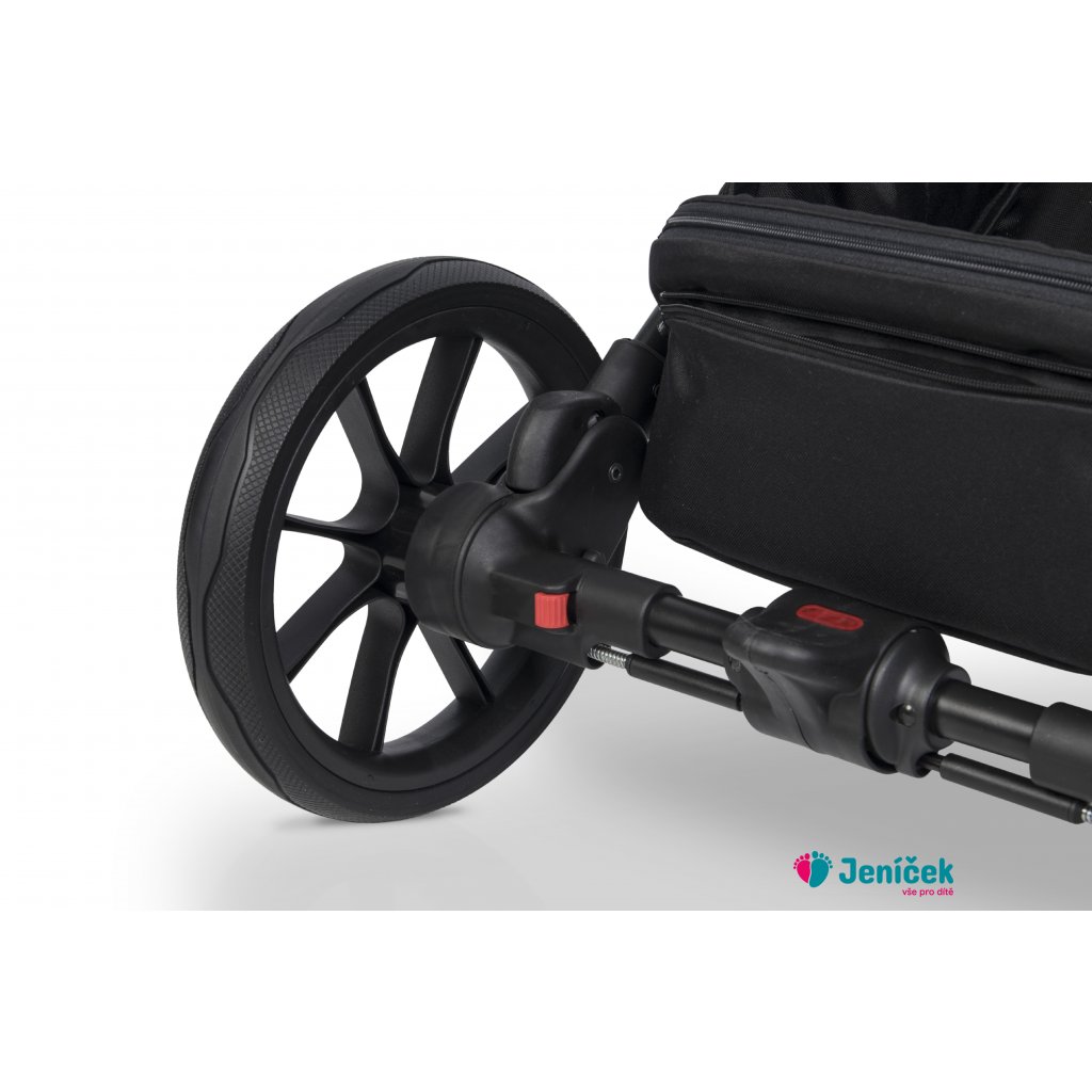 nezávislé systémy tlumení nárazů, kde 2 z nich mají nastavení tuhosti. kočárek Riko