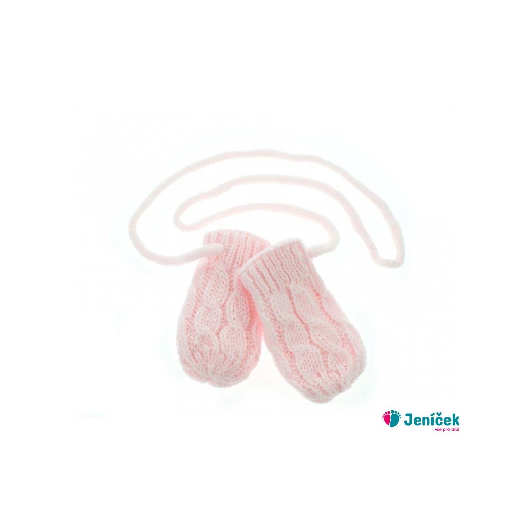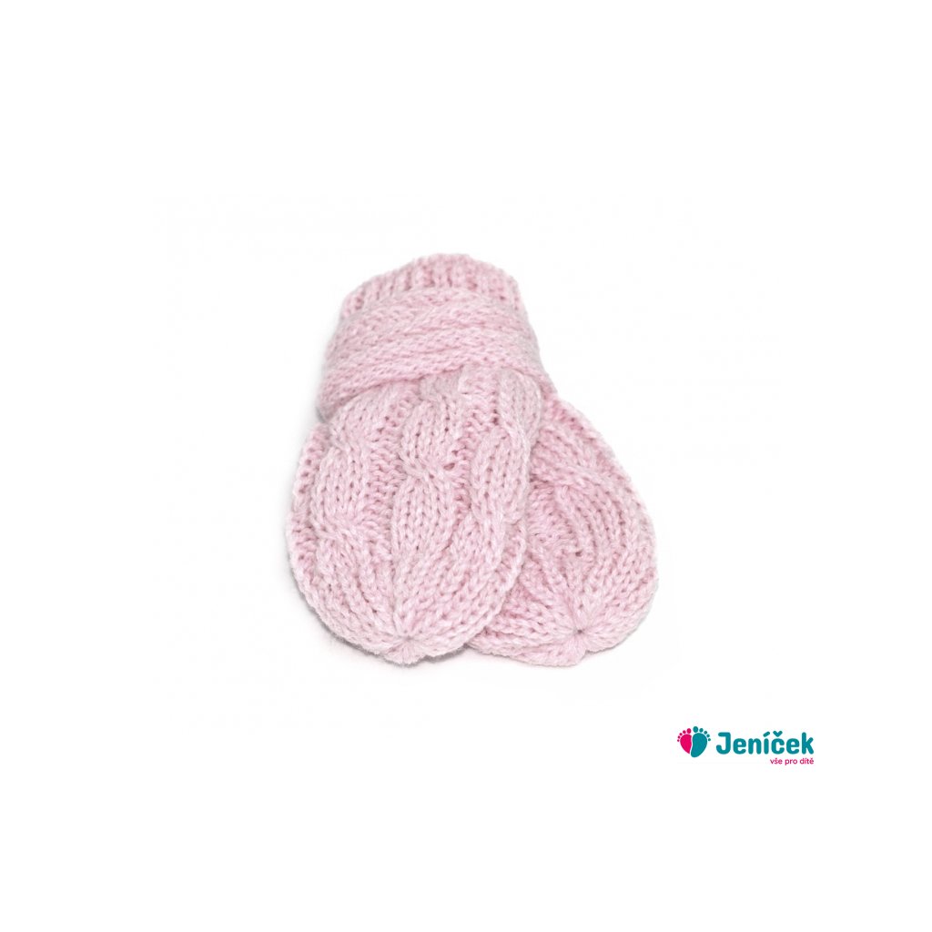 Zimní pletené kojenecké rukavičky se vzorem - sv. růžové, vel. 56/68