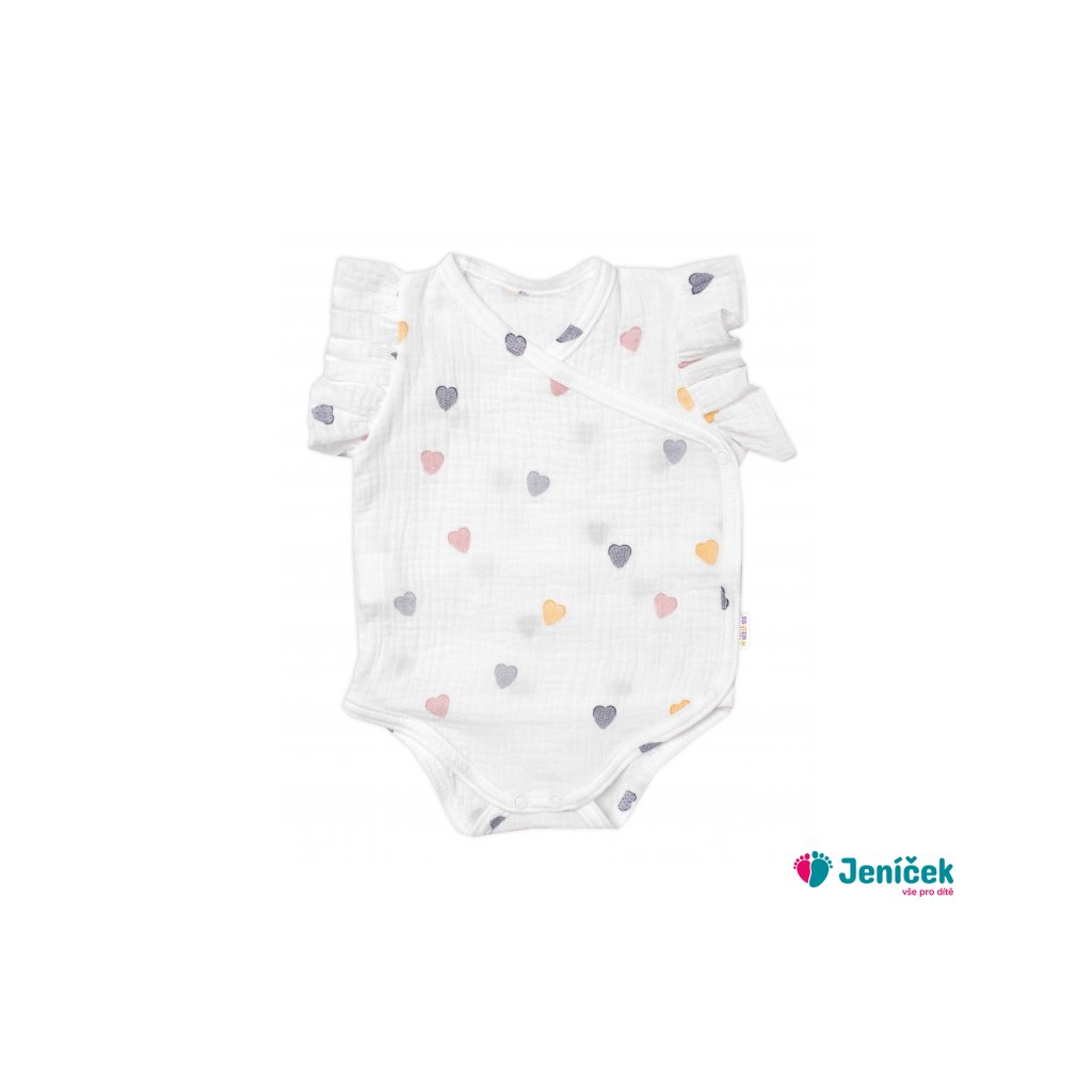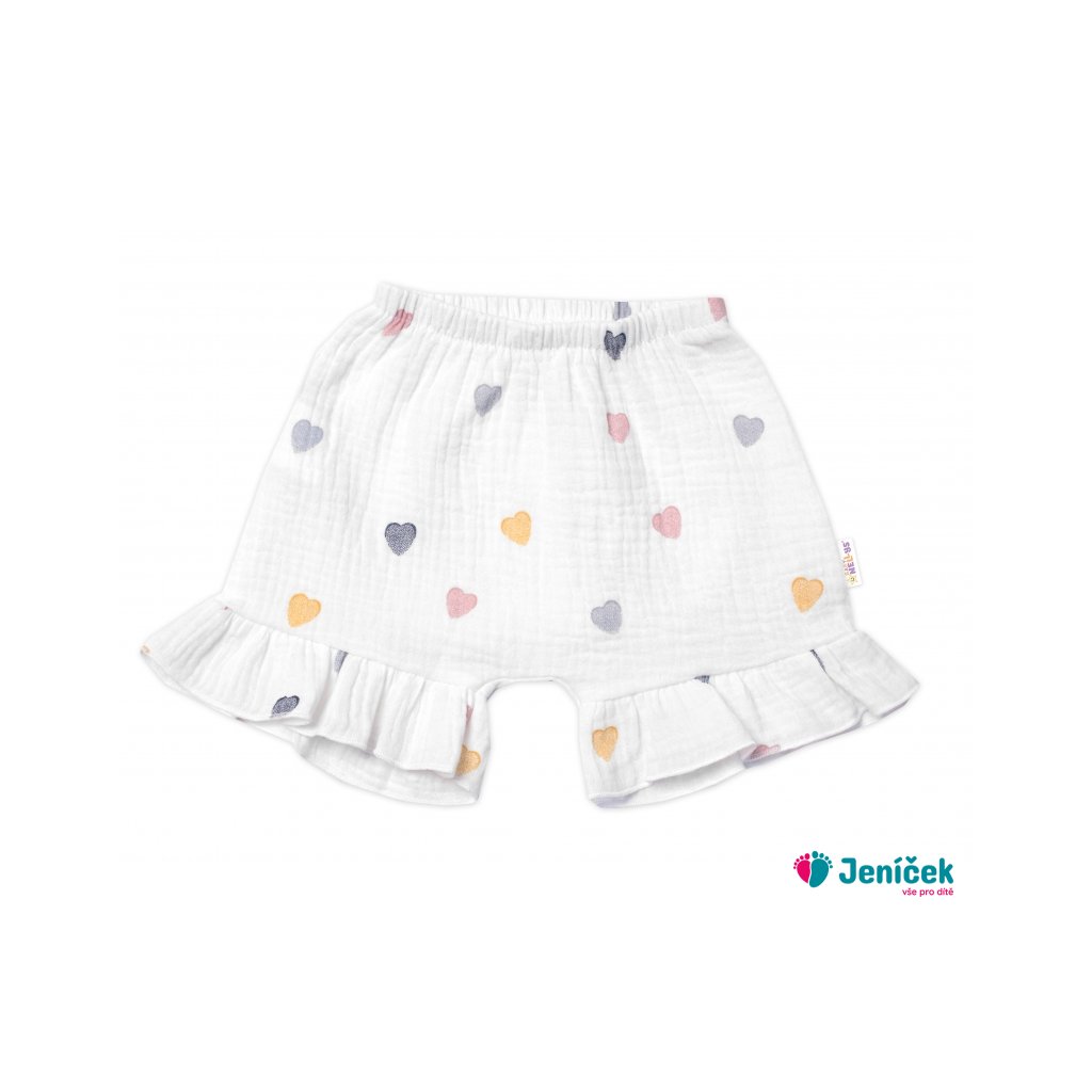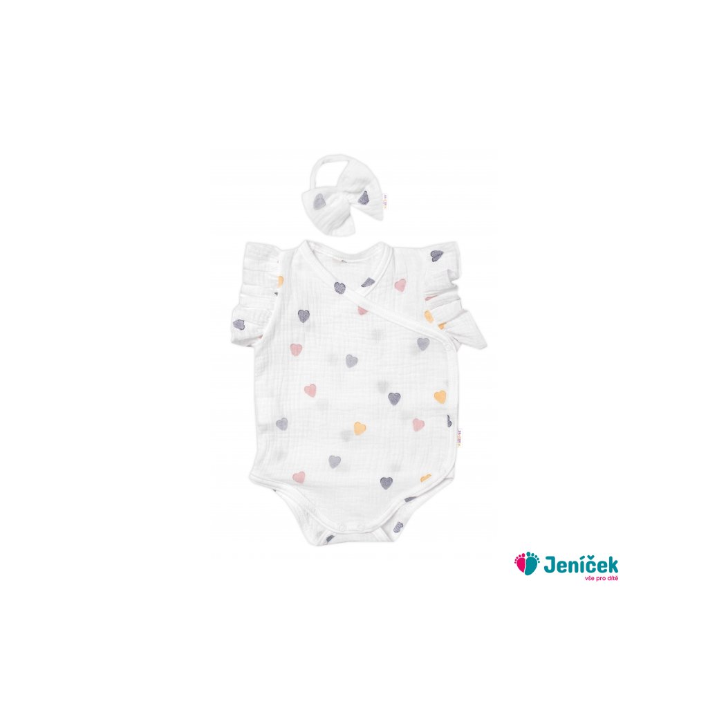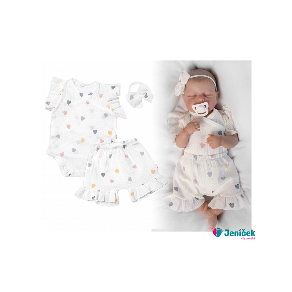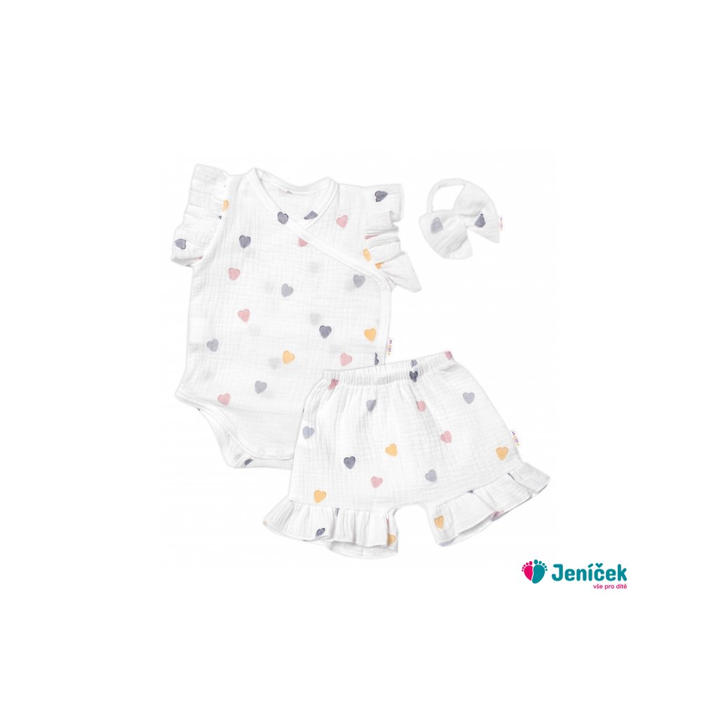 Zavinovací body, kraťasky + čelenka, mušelín, Srdíčko, Baby Nellys, smetanové