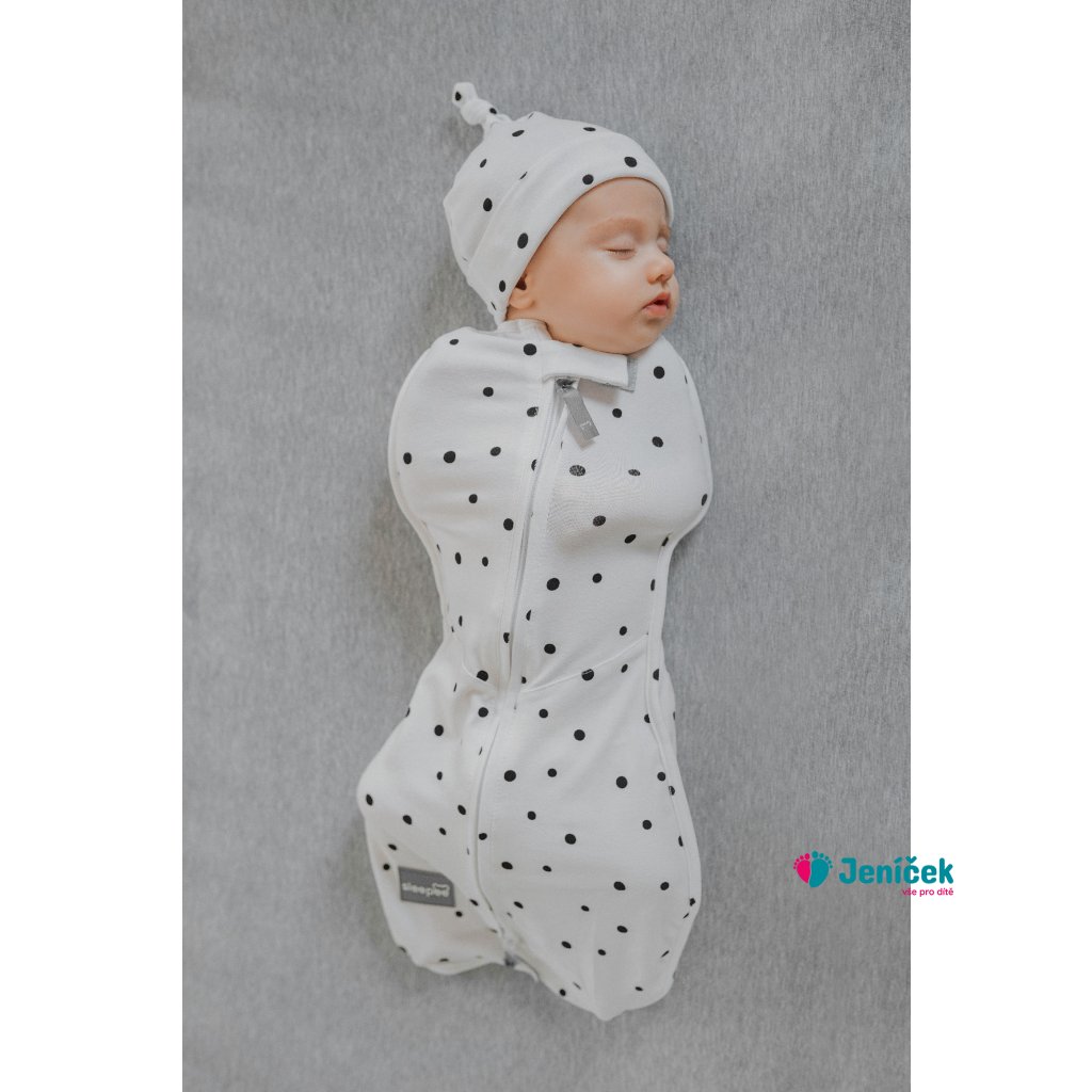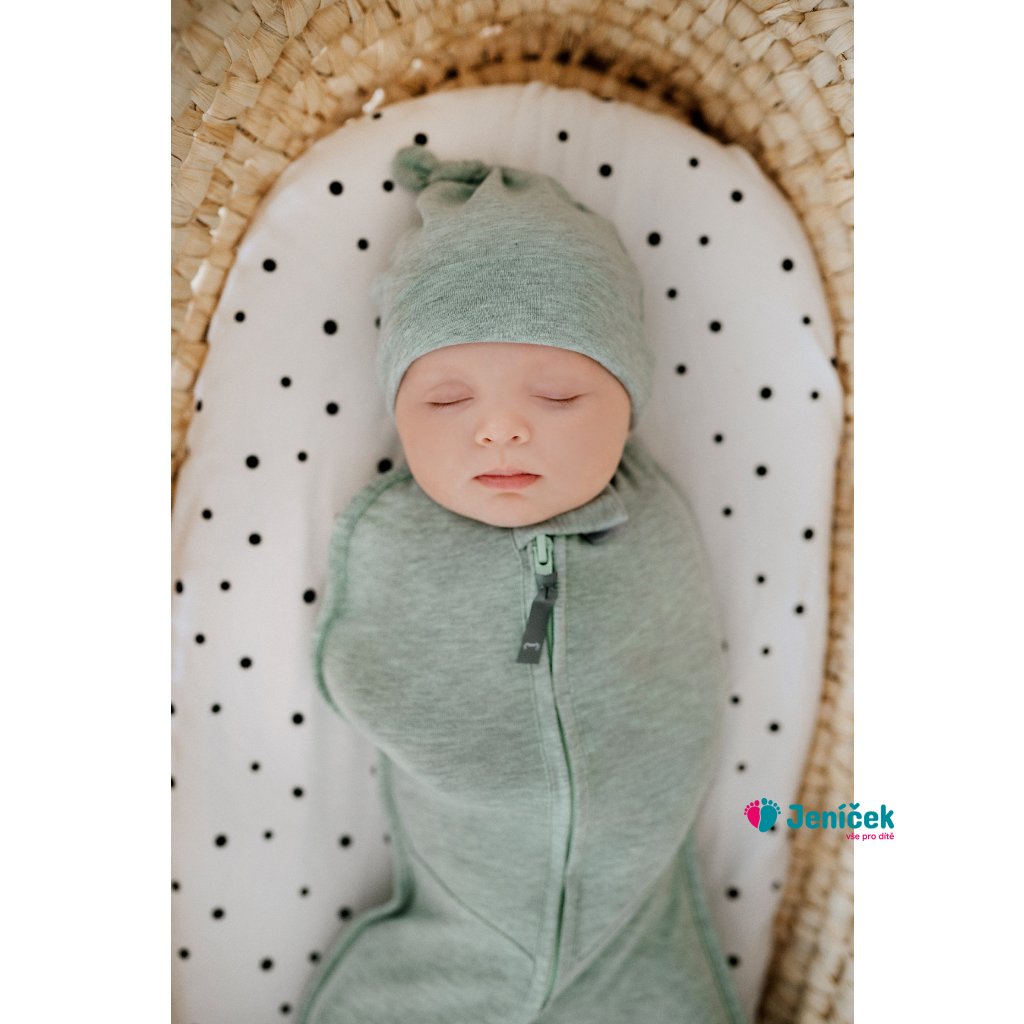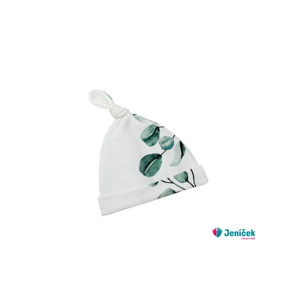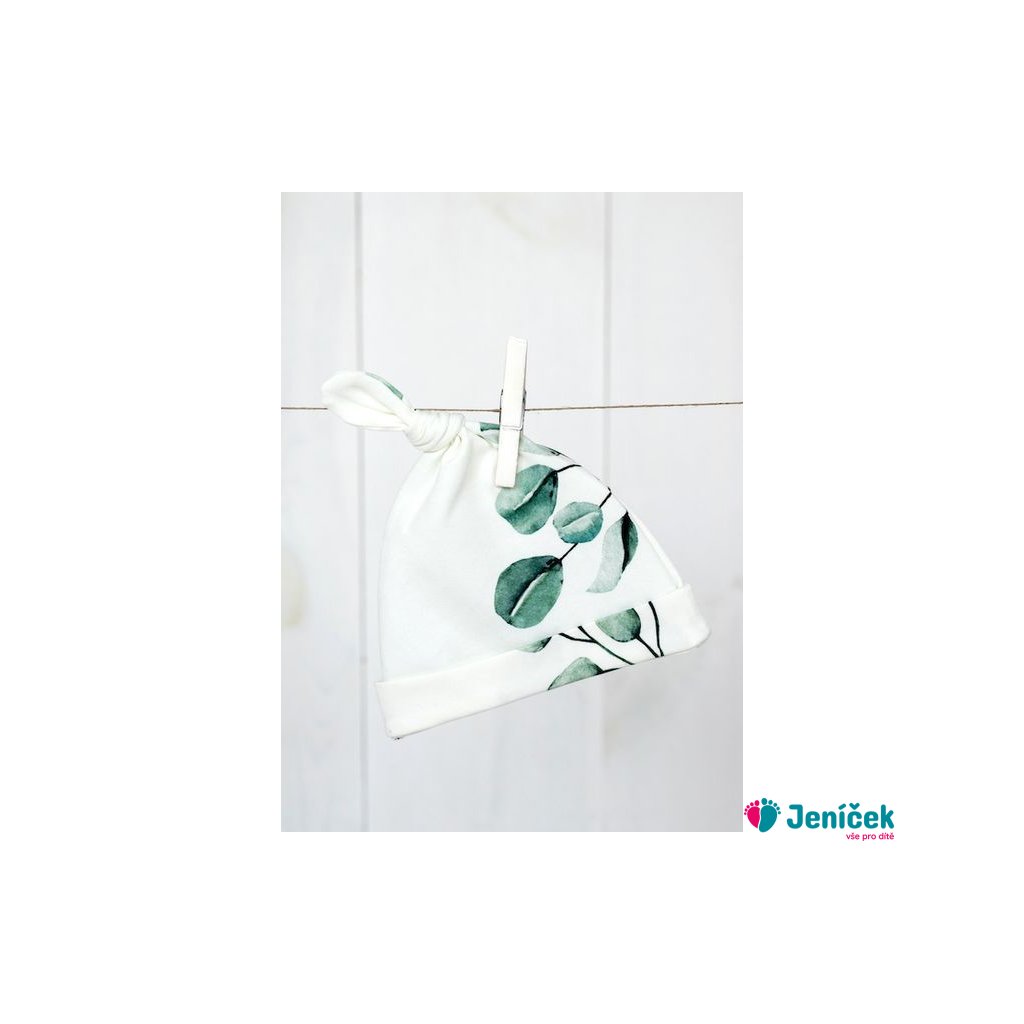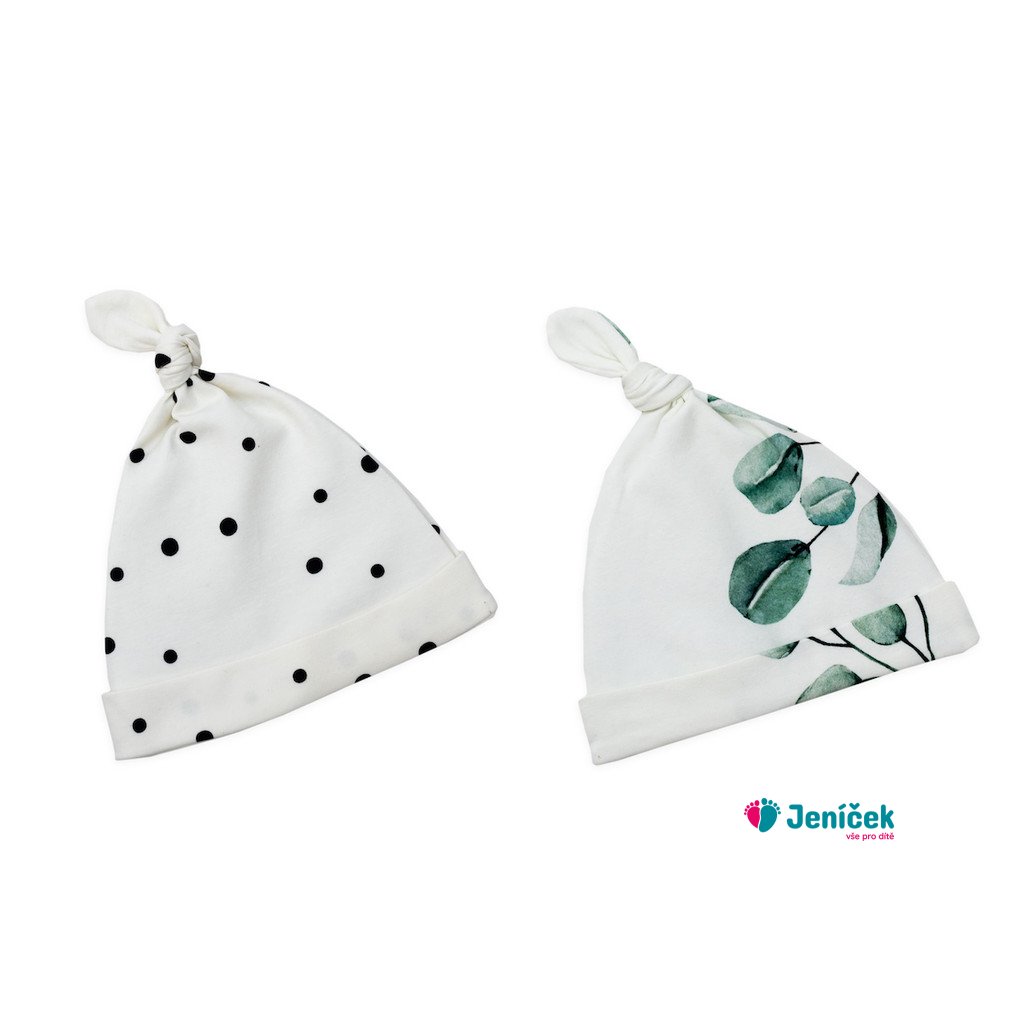 Dětské čepice 2-4 měsíce - sada dvou kusů černé tečky/eukalyptus