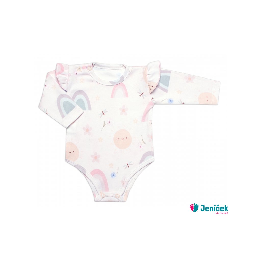 Body dl. rukáv s volánkem, bavlna, zapínání u krku Mrofi, Rainbow - bílé, vel. 80