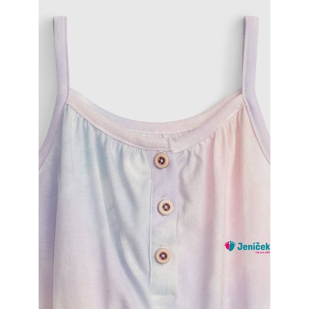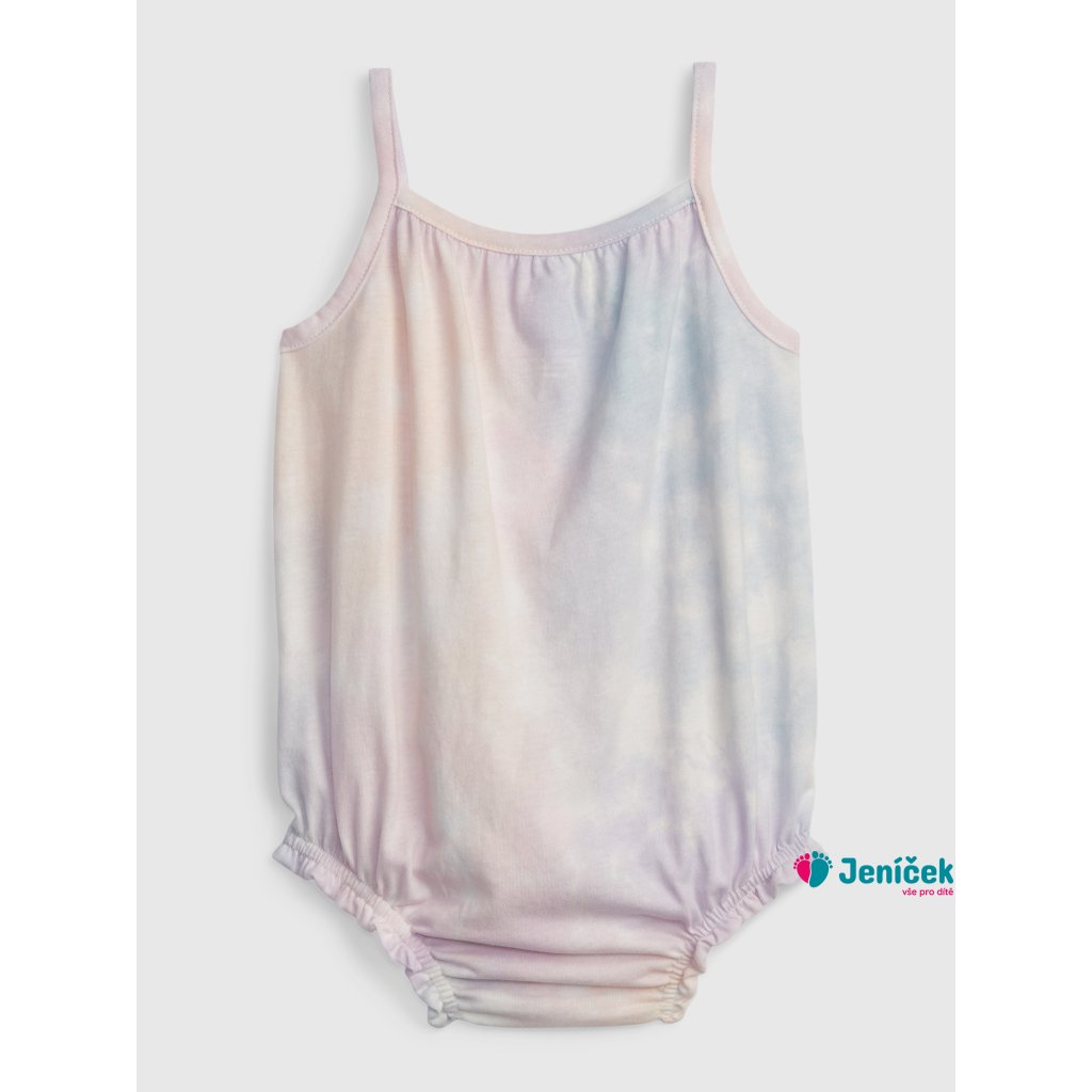 Letní body pro miminko. Jemná vícebarevná batika. Měkký bavlněný úplet. Úzká špagetová ramínka. Zapínání na 3 knoflíčky. Pružné lemy nohaviček. Zapínání na patentky. 100% bavlna. 100% bavlna