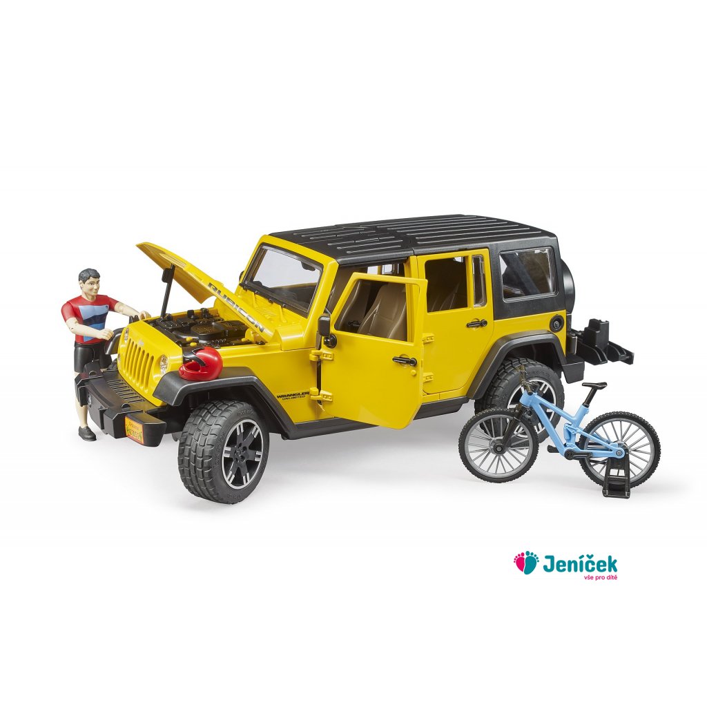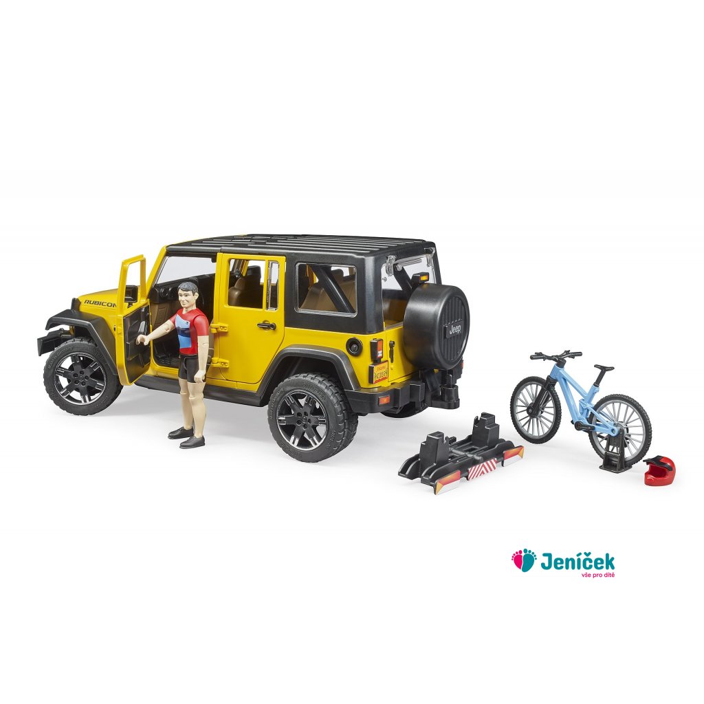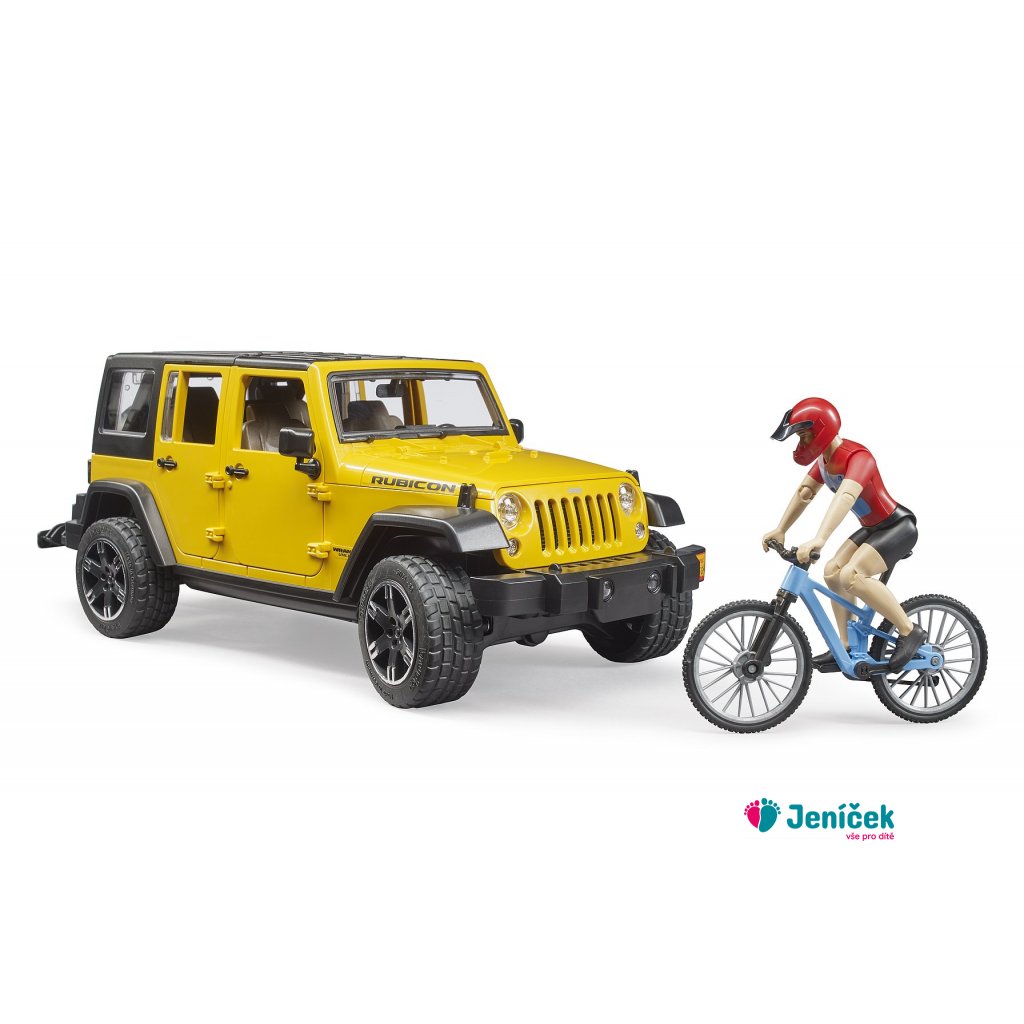 Bruder Jeep Wrangler Rubicon s cyklistou a kolem