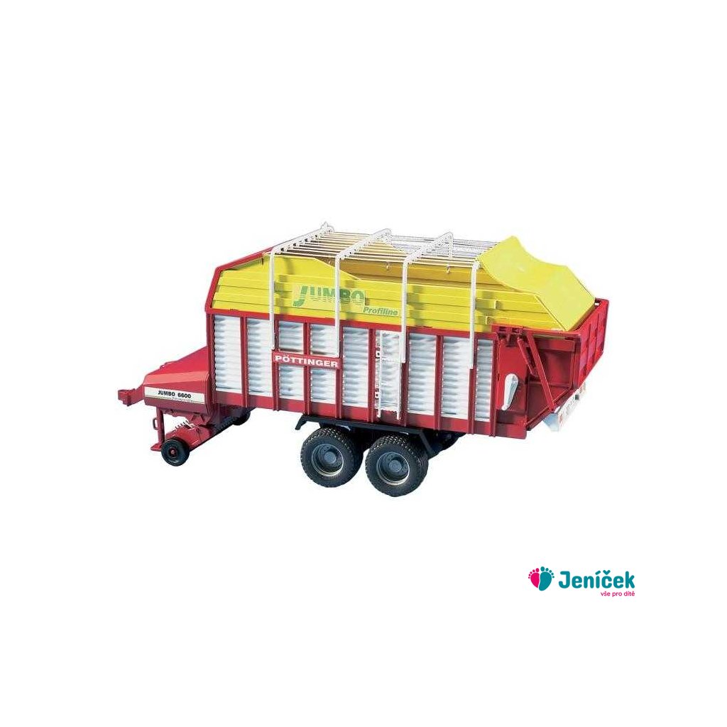 Bruder Sběrací vůz na seno PÖTTINGER Sběrač slámy Pőttinger Jumbo je vyroben ve skvělém barevném designu, propracovaný do nejmenších detailů. Je vybaven sklápěcí opěrnou nohou, která zajišťuje dokonalou stabilitu celého vozu. Boční stěny je možné otevřít včetně odklápěcího žebříku a pomocná držadla na střeše lze odejmout. Zadní část je pak možné bez problému otevřít. Pomocí ruční kliky se ovládají dávkovací válce - rotující spodní sběrač a rotující vykladač. Sběrač slámy lze samostatně postavit na podpěru. Je připojitelný za všechny traktory BRUDER série 20xx, 21xx a 30xx. Vyrobeno v Německu, z kvalitních materiálů.Hlavní vlastnosti: barevný designotevíratelné boční stěnyodklápěcí žebříkodejímatelná držadla na střešekompatibilní se všemi traktory Bruder série 20xx, 21xx a 30xxvyrobeno v Německu
