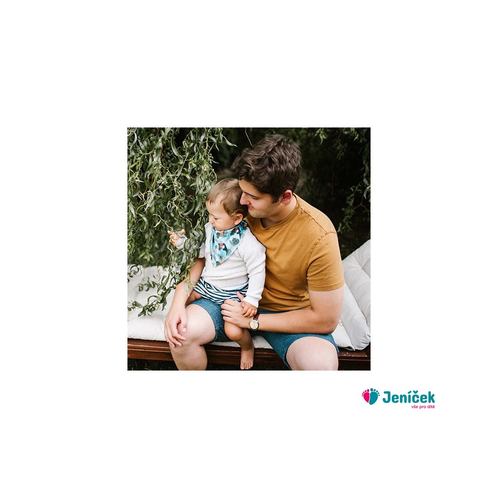 V balení jsou 2 kusy. Nákrčník je dodáván s nastavitelnými patentními knoflíky, díky čemuž je ideální pro miminka i předškoláky.