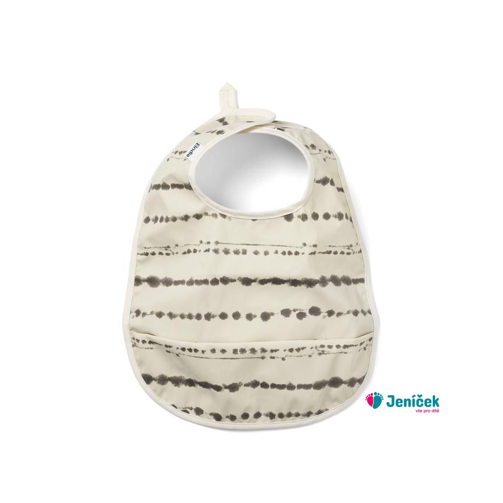 Praktický bryndák je z nové jarní kolekce. Potažen je pogumovanou vrstvičkou, aby byl snadno opláchnutelný, stíratelný a rychle čistý po každém použití. Přední kapsa zachytí drobky a kapky od pití. Bryndák se snadno nandavá a sundavá díky uzavírání na suchý zip. Vyrobeno bez použití PVC a ftalátů.