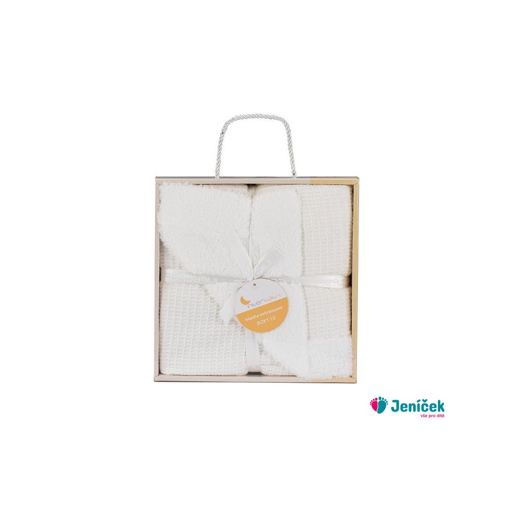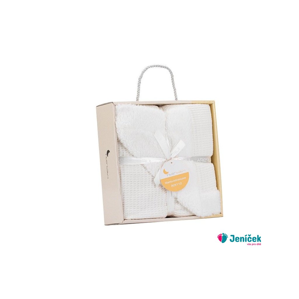 Nádherný dárek balený v dárkové krabičce, vhodný pro narozená miminka i větší děti do tří let, které si velikost deky užijí. Deka je jemná k dětské pokožce.