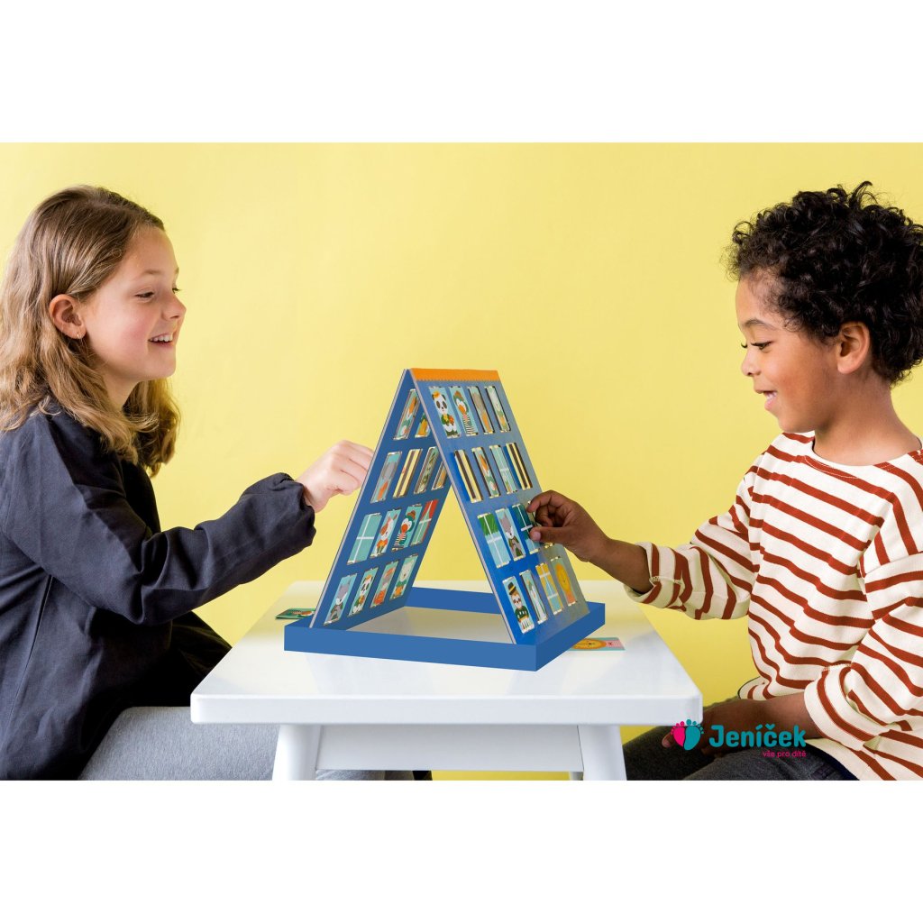 Ťuk, ťuk! Kdo tam? Uhádněte kdo je za dveřmi dřív, než to uhádne Váš soupeř! Klasická zábavná desková hra o dedukci. Hra se speciální herní plochou, která se dá postavit do písmene A. Je oboustranná, má otočná okýnka a neobsahuje plast. Hlavní vlastnosti: Hra pro dva hráče, průměrná doba hry 10 minutVyrobeno z recyklovaných materiálů Natištěno inkoustem ze zeleninyOd 4 do 8 let věkuSplňuje a překračuje všechny bezpečnostní normy