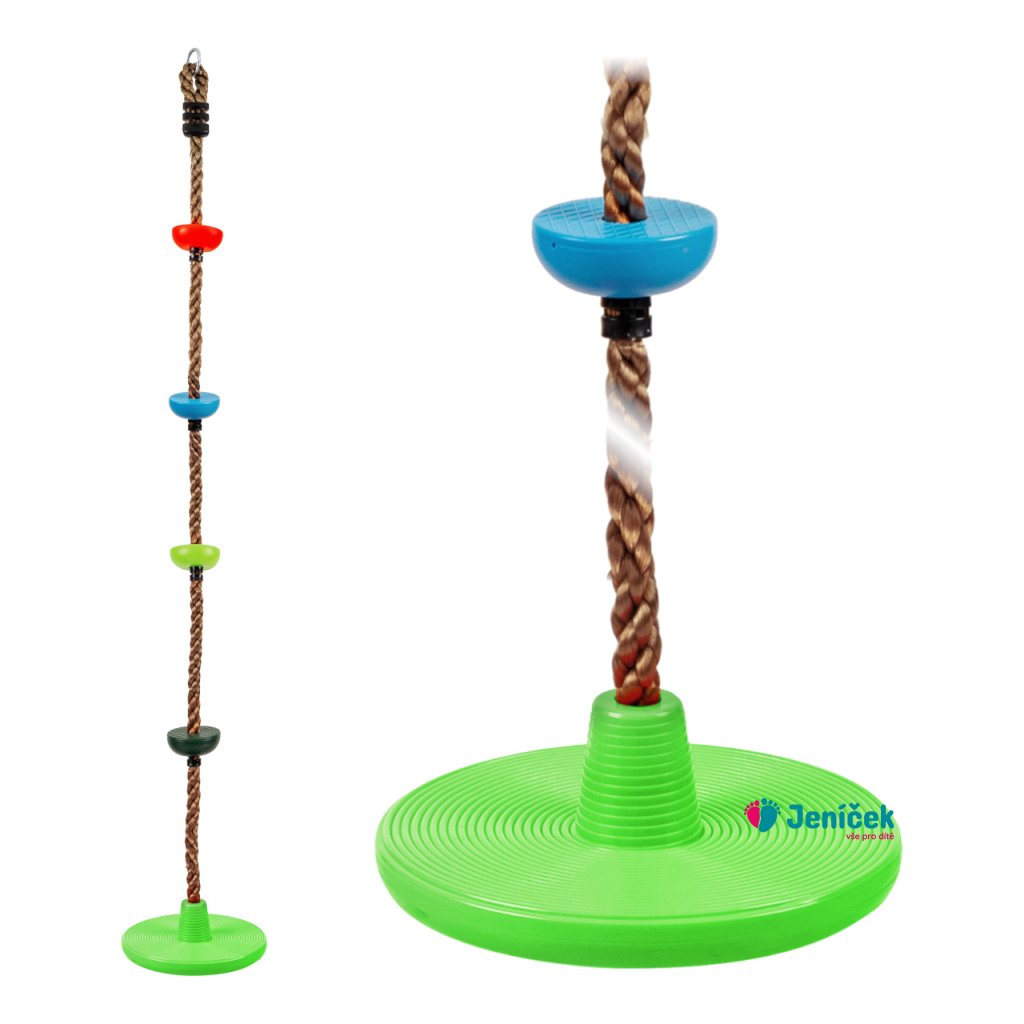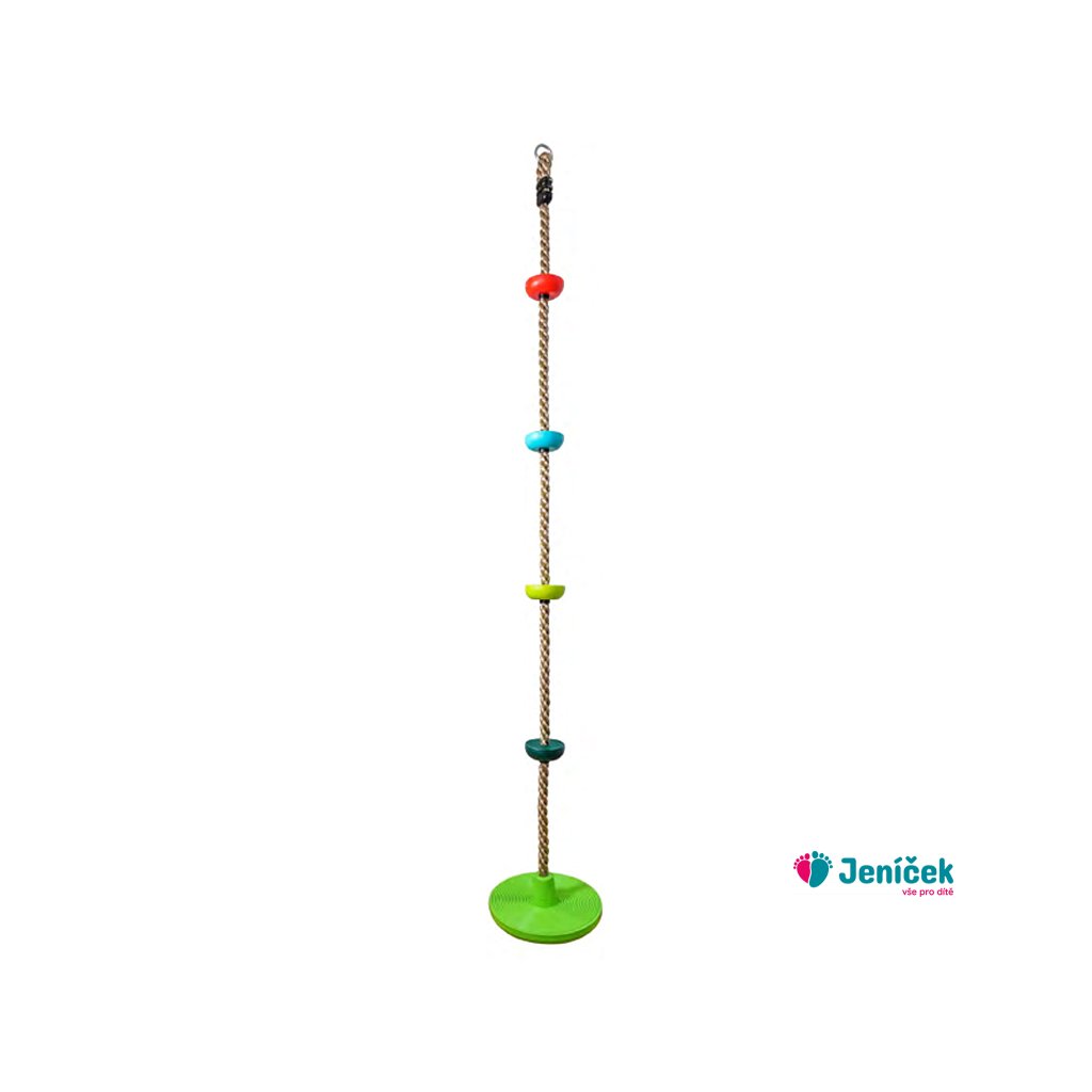 Dětské šplhací lano s barevnými disky a zakončeno kulatou houpačkou z plastu. Nezbytný pomocník pro objevitele venkovní zábavy na dětském hřišti nebo k domečku na stromě. Hlavní vlastnosti: