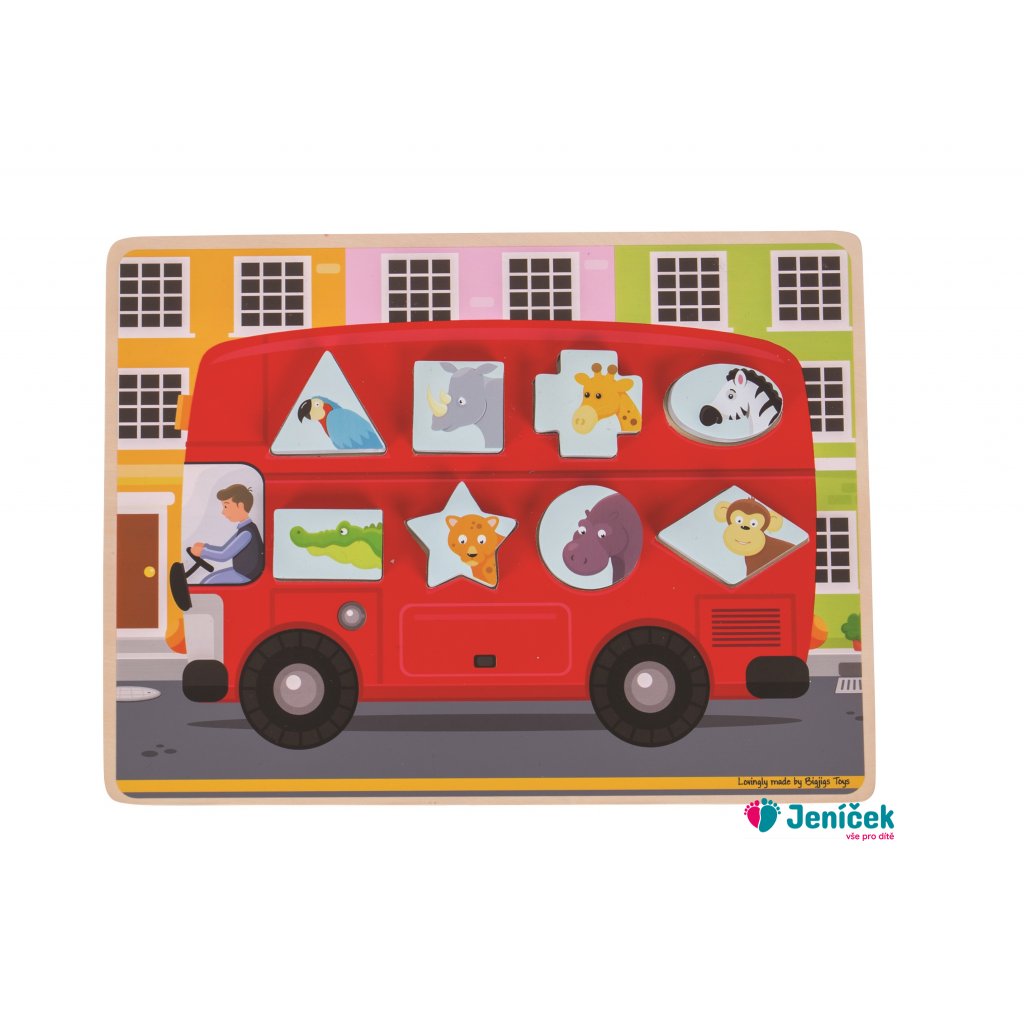 Bigjigs Toys Vkládací puzzle autobus se zvířátky