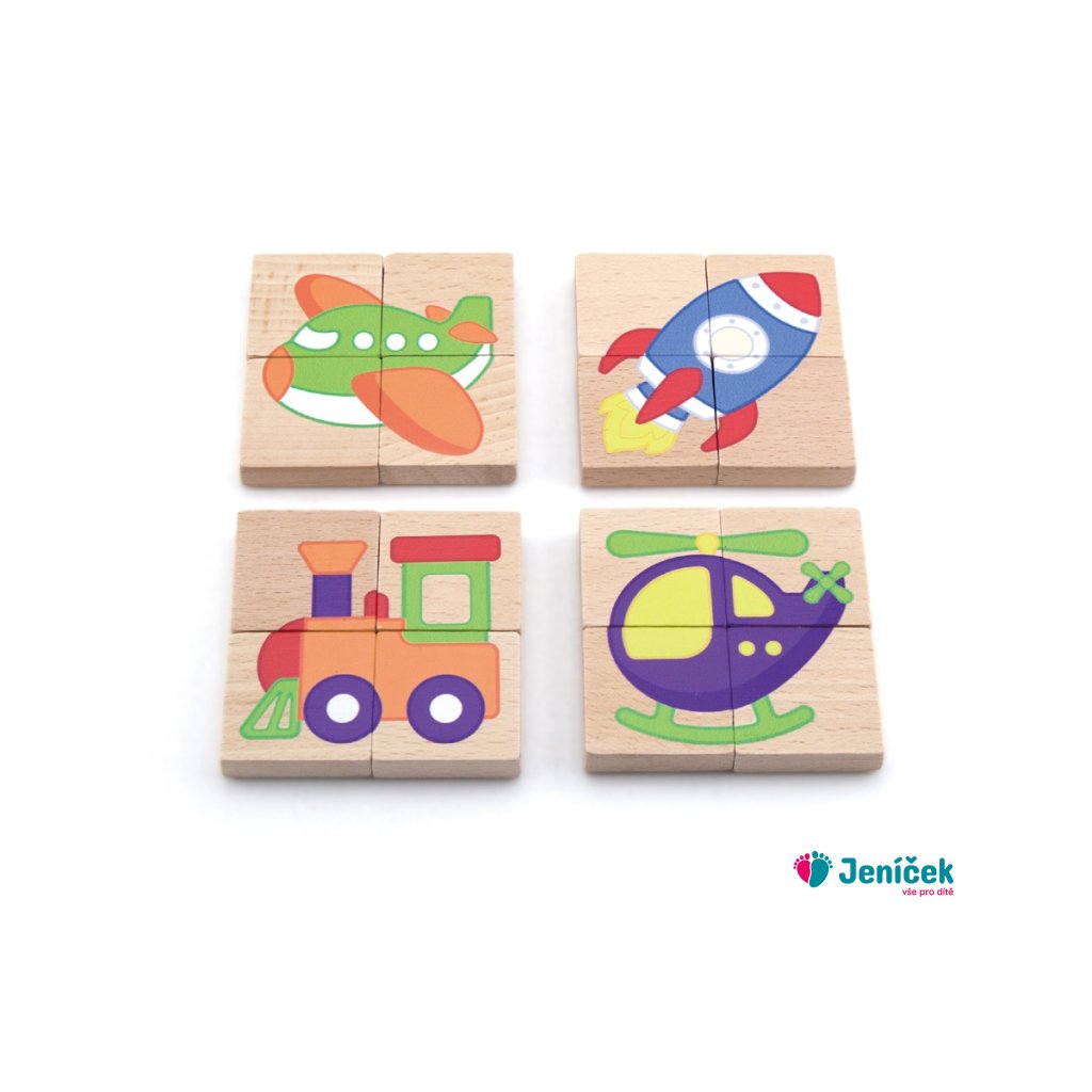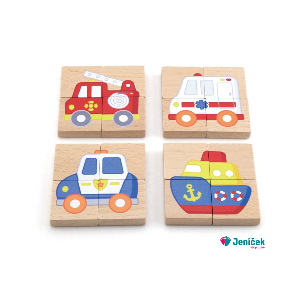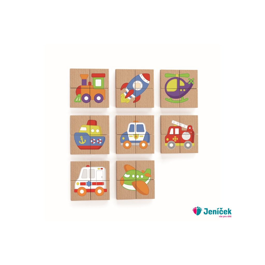 Dřevěné magnetické puzzle s motivy dopravních prostředků. Balení obsahuje celkem 32 kusů. Rozměry balení cca 26 x 18 x 5 cm. Věk 18m+