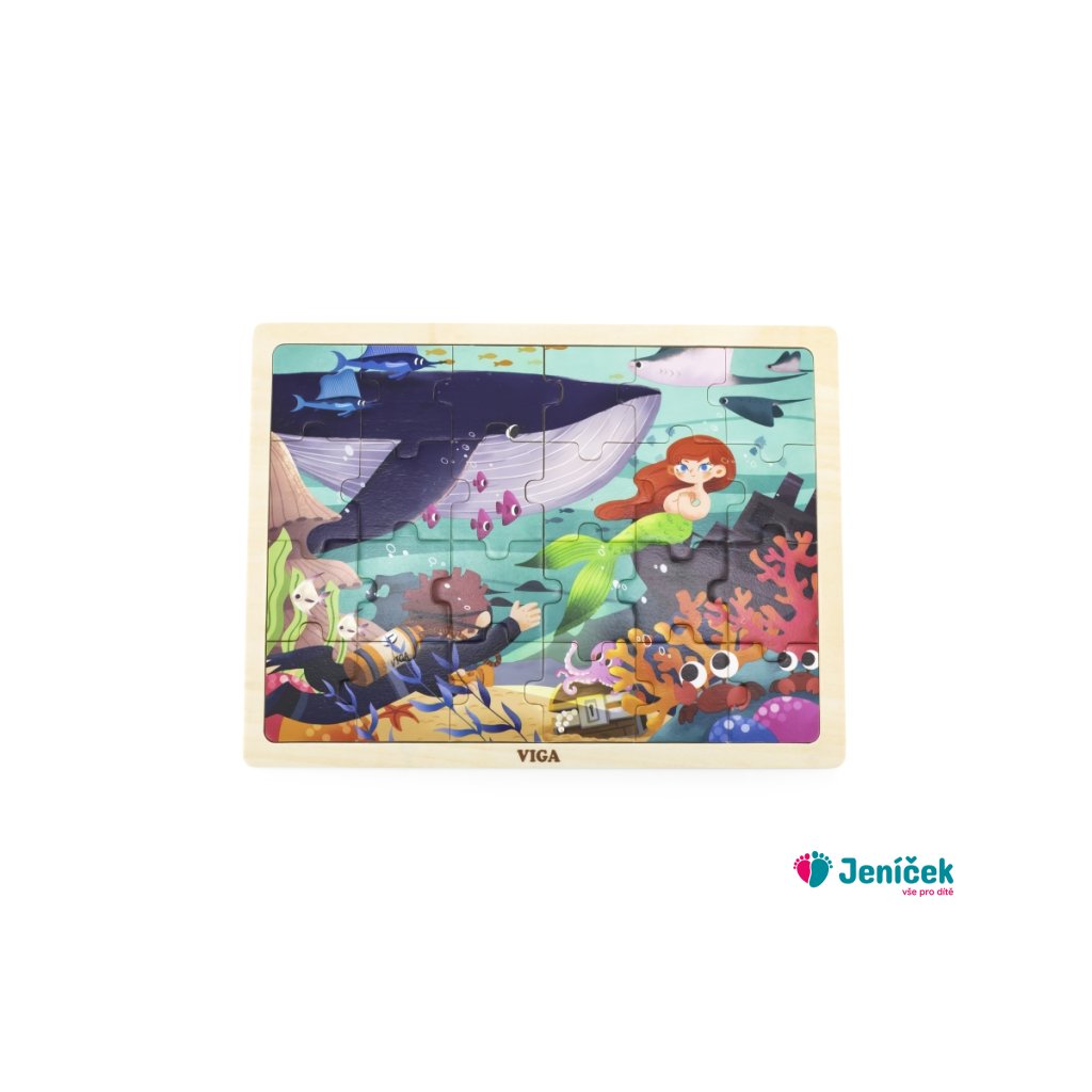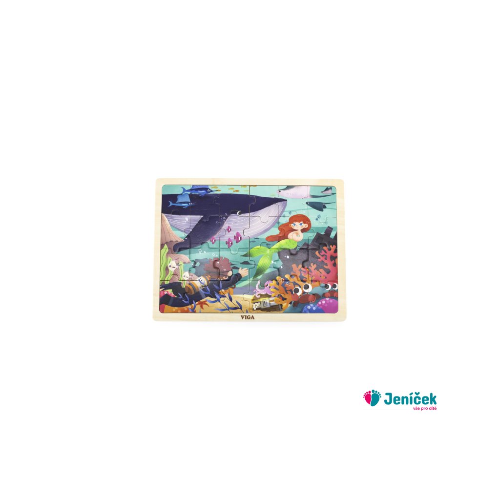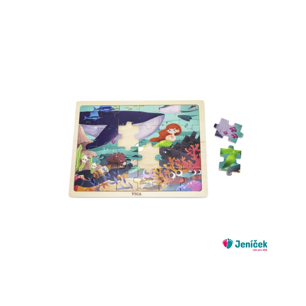 Dřevěné puzzle s obrázkem malé mořské víly. Celkem 24 dílků. Rozměry obrázku cca 27,5 x 20 cm. Rozměry balení cca 30 x 27 x 1 cm. Věk 24m+