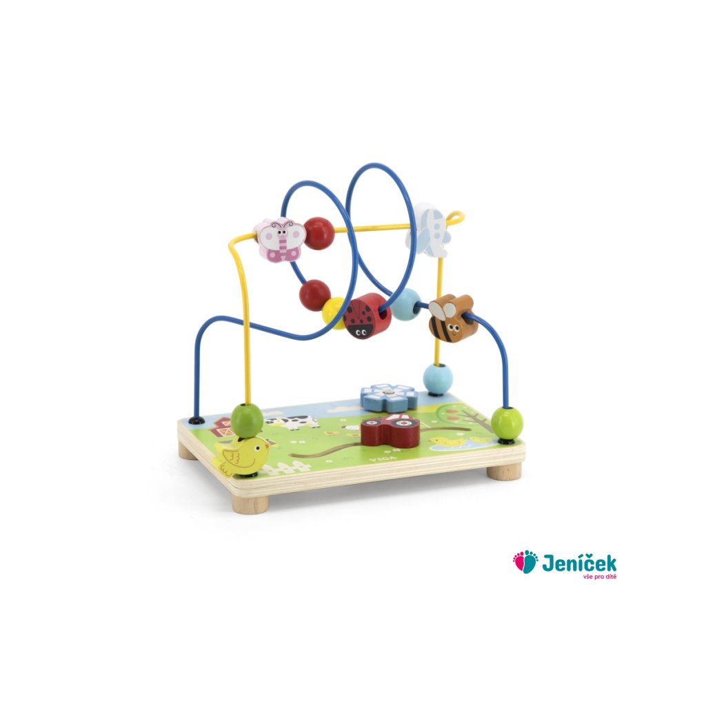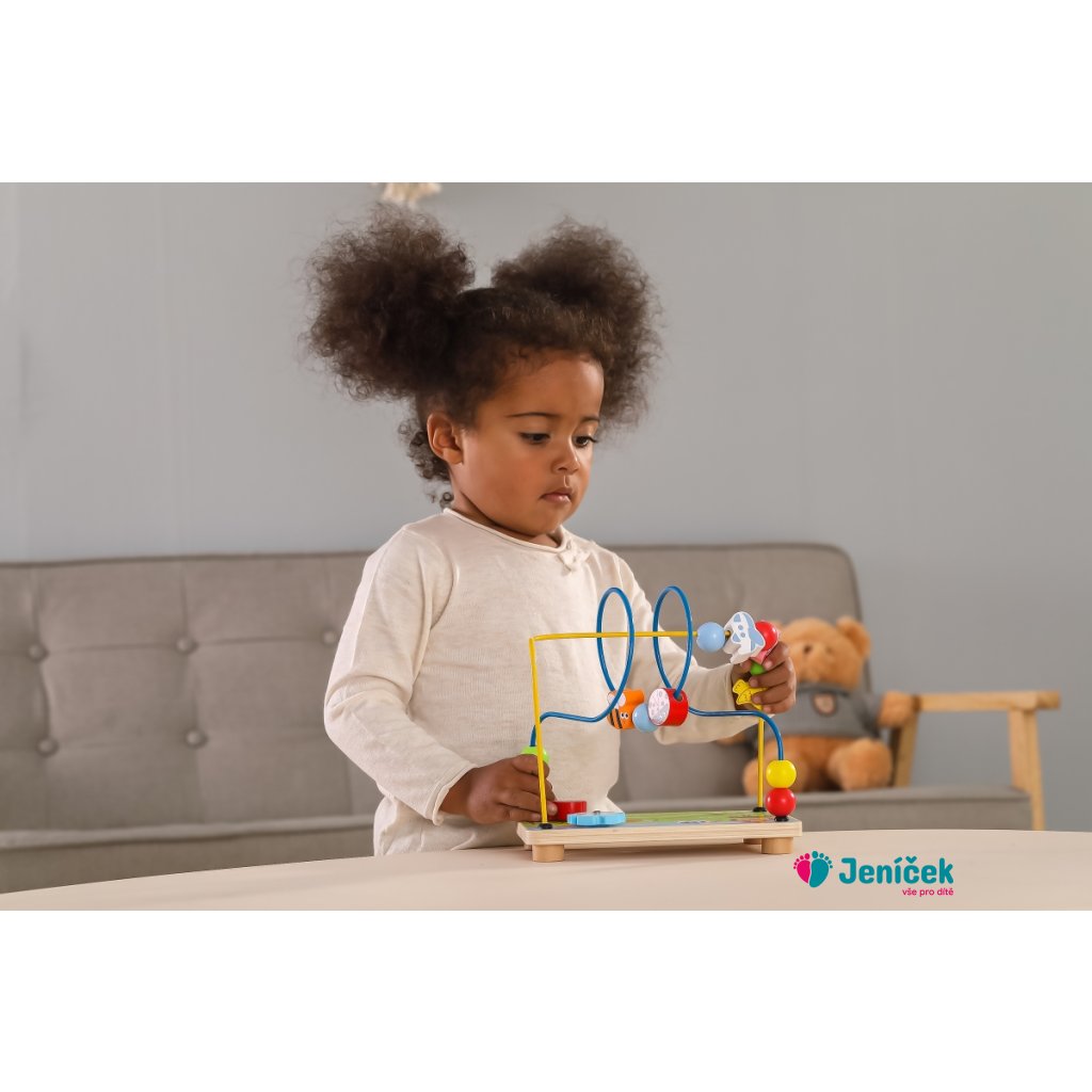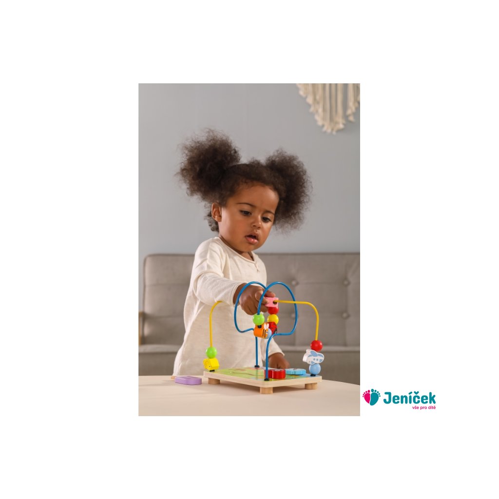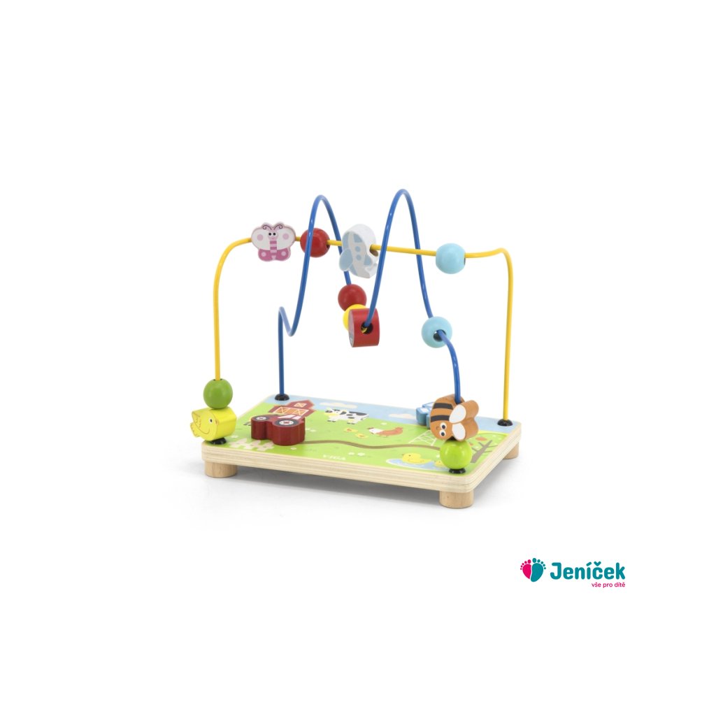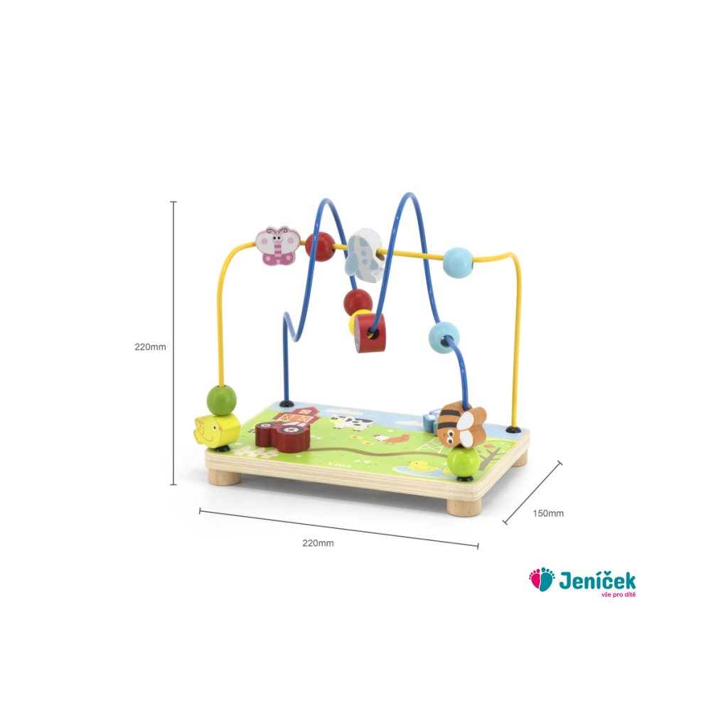 Dřevěný labyrint se zvířátky o rozměru cca 22 x 15 x 22 cm. Rozměr balení cca 23 x 23 x 16 cm. Věk 12m+