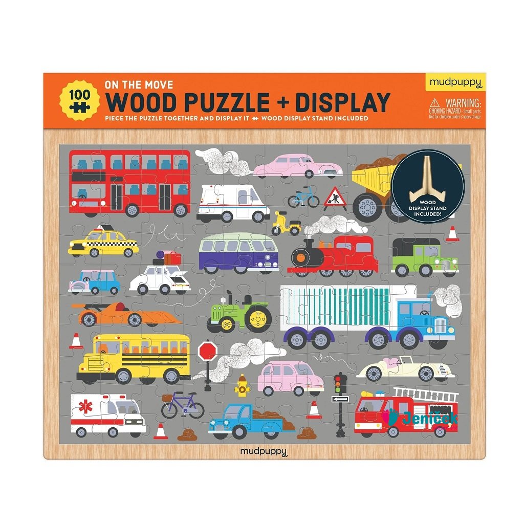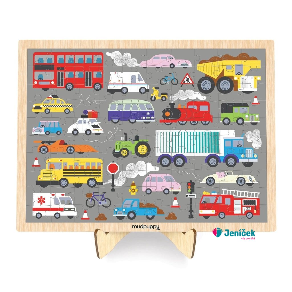 Mudpuppy Dřevěné puzzle Dopravní prostředky + stojánek 100 dílků