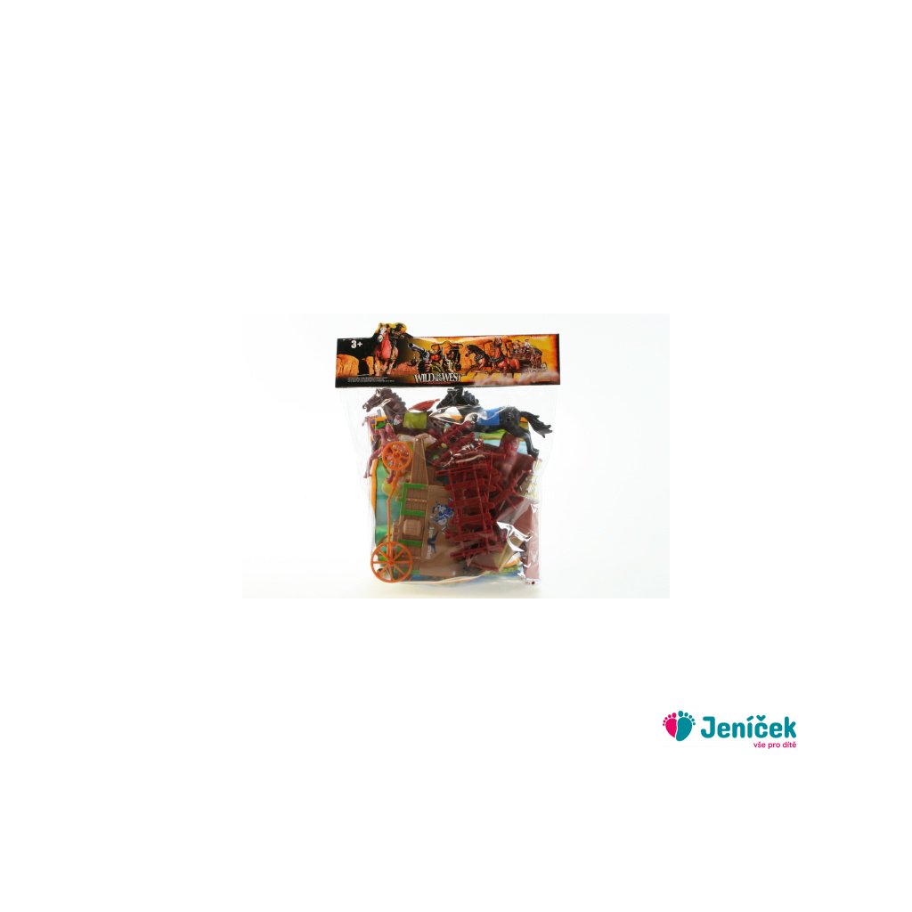 Plastoví indiání v sáčku (indián, dostavník, koně, týpí, plánek). Rozměr balení cca 20 x 22 cm. Materiál plast. Věk 3+
