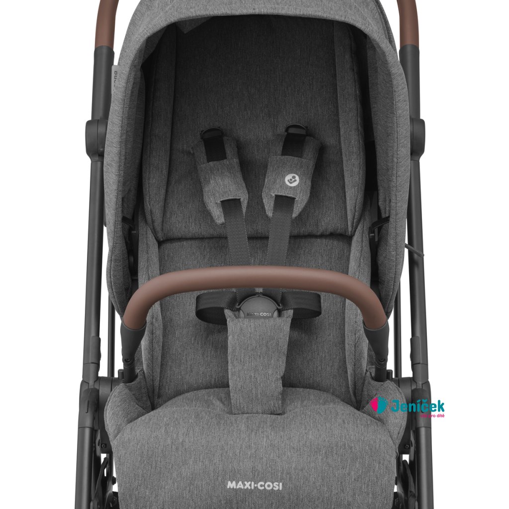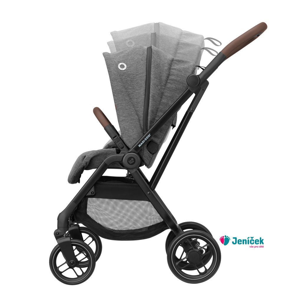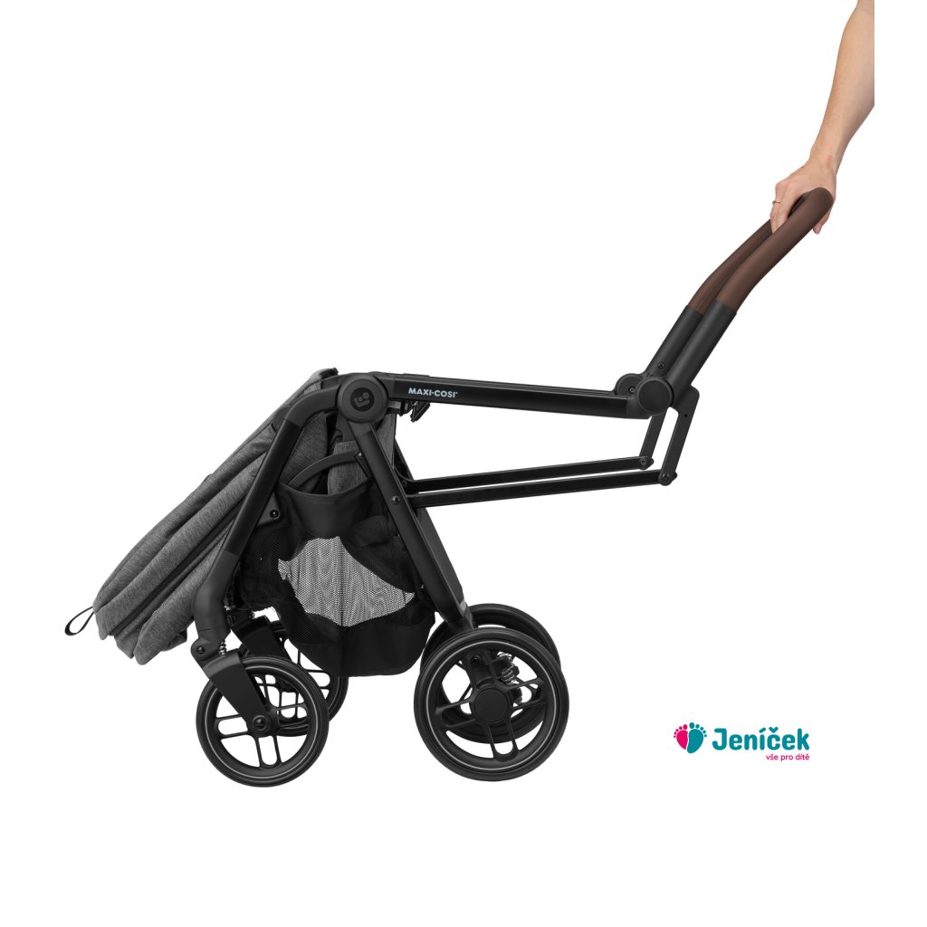 Ultra kompaktní kočárek Maxi-Cosi Leona nabízí maximální komfort a současně minimální velikost. Díky bleskovému skládání jednou rukou a nízké hmotnosti ho můžete snadno převážet autem či tramvají, vynést po schodech s dítětem v náručí apod. Kočárek zároveň nabízí velký úložný prostor pro uložení nákupu. Rychlé skládání jednou rukou do kompaktního tvaru Snadné ovládání kočárku díky pohodlné rukojeti Velká UV50+ stříška proti slunci, která vaše dítě ochrání i v pozici vleže Síťovaný díl stříšky umožňuje větrání během teplého počasí 5-bodový bezpečností pás s magnetickým uzávěrem umožňuje rychlé a bezpečné připoutání dítěte Chrániče pásů na ramenech a mezi nohami Nastavitelné polohy sezení kočárku včetně rovné polohy pro spaní Nastavitelná výška opěrky sedáku pro přizpůsobení výšce dítěte Sedák možno umístit po i proti směru jízdy Pohodlné polstrování sedáku Nastavitelná opěrka pro nohy Otočné madlo před dítě Rukojeť kočárku i madlo před dítětem jsou potaženy umělou kůží Kapsa na zadní straně opěradla sedáku pro uložení drobností Brzda na zadních kolech pro maximální bezpečí Velká kola odolná proti propíchnutí Kvalitní odpružení všech čtyř kol Otočná přední kola kočárku Prostorný košík s nosností 3 kg Složený kočárek stojí samostatně ve vzpřímené poloze Vyrobeno z materiálu odpuzujícího vodu a nečistoty Snímatelný potah kočárku lze prát v pračce Součástí balení je kočárek se sedákem a stříškou, madlo a adaptéry pro připevnění korbičky. Adaptéry pro autosedačku se prodávají samostatně. Ke kočárku je dále možné dokoupit samostatně prodávanou pláštěnku, moskytiéru, slunečník a fusak. Kočárek je kompatibilní s korbičkami MAXI-Cosi a autosedačkami MAXI-COSI Pebble 360, Coral 360, Cabriofix, Tinca, Marble, Pebble Pro, Rock a Citi. Kočárek je vhodný od narození do 22 kg (do 48 měsíců). Technické vlastnosti: Hmotnost: 8,84 kg Hmotnost podvozku: 5,3 kg Rozměry (V x H x Š): 103,5 cm x 85,5 cm x 46,5 cm Rozměry složeného kočárku: 58,5 x 31 x 46 cm Upozornění: Nenechávejte dítě v kočárku bez dozoru. Kočárek není vhodný pro běhání nebo jízdu na bruslích. Při použití kočárku od narození používejte zadní opěrku v maximálně sklopené poloze.