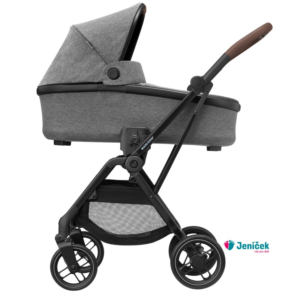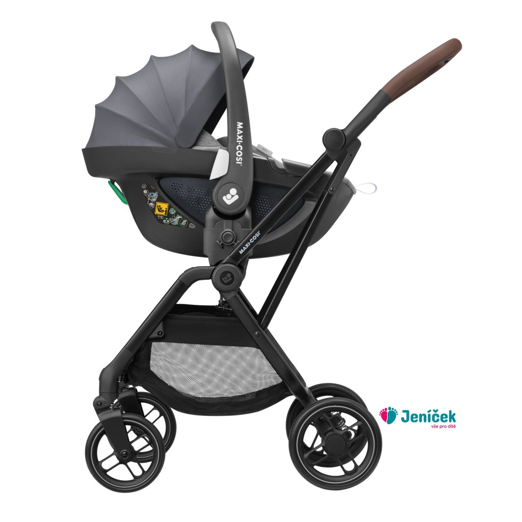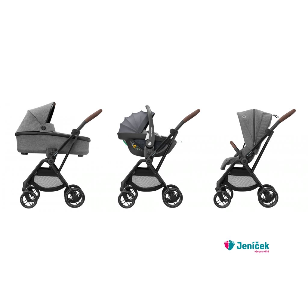 Ultra kompaktní kočárek Maxi-Cosi Leona nabízí maximální komfort a současně minimální velikost. Díky bleskovému skládání jednou rukou a nízké hmotnosti ho můžete snadno převážet autem či tramvají, vynést po schodech s dítětem v náručí apod. Kočárek zároveň nabízí velký úložný prostor pro uložení nákupu. Rychlé skládání jednou rukou do kompaktního tvaru Snadné ovládání kočárku díky pohodlné rukojeti Velká UV50+ stříška proti slunci, která vaše dítě ochrání i v pozici vleže Síťovaný díl stříšky umožňuje větrání během teplého počasí 5-bodový bezpečností pás s magnetickým uzávěrem umožňuje rychlé a bezpečné připoutání dítěte Chrániče pásů na ramenech a mezi nohami Nastavitelné polohy sezení kočárku včetně rovné polohy pro spaní Nastavitelná výška opěrky sedáku pro přizpůsobení výšce dítěte Sedák možno umístit po i proti směru jízdy Pohodlné polstrování sedáku Nastavitelná opěrka pro nohy Otočné madlo před dítě Rukojeť kočárku i madlo před dítětem jsou potaženy umělou kůží Kapsa na zadní straně opěradla sedáku pro uložení drobností Brzda na zadních kolech pro maximální bezpečí Velká kola odolná proti propíchnutí Kvalitní odpružení všech čtyř kol Otočná přední kola kočárku Prostorný košík s nosností 3 kg Složený kočárek stojí samostatně ve vzpřímené poloze Vyrobeno z materiálu odpuzujícího vodu a nečistoty Snímatelný potah kočárku lze prát v pračce Součástí balení je kočárek se sedákem a stříškou, madlo a adaptéry pro připevnění korbičky. Adaptéry pro autosedačku se prodávají samostatně. Ke kočárku je dále možné dokoupit samostatně prodávanou pláštěnku, moskytiéru, slunečník a fusak. Kočárek je kompatibilní s korbičkami MAXI-Cosi a autosedačkami MAXI-COSI Pebble 360, Coral 360, Cabriofix, Tinca, Marble, Pebble Pro, Rock a Citi. Kočárek je vhodný od narození do 22 kg (do 48 měsíců). Technické vlastnosti: Hmotnost: 8,84 kg Hmotnost podvozku: 5,3 kg Rozměry (V x H x Š): 103,5 cm x 85,5 cm x 46,5 cm Rozměry složeného kočárku: 58,5 x 31 x 46 cm Upozornění: Nenechávejte dítě v kočárku bez dozoru. Kočárek není vhodný pro běhání nebo jízdu na bruslích. Při použití kočárku od narození používejte zadní opěrku v maximálně sklopené poloze.