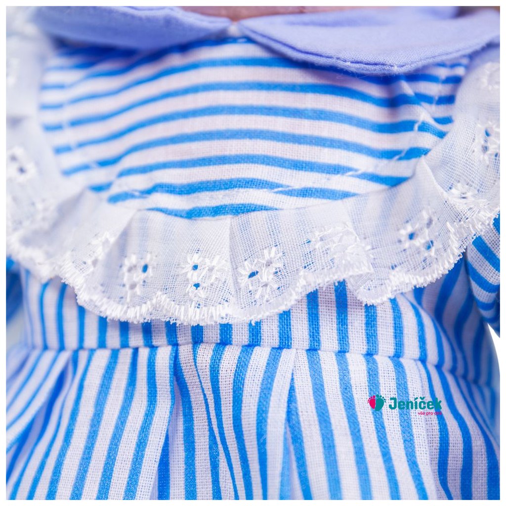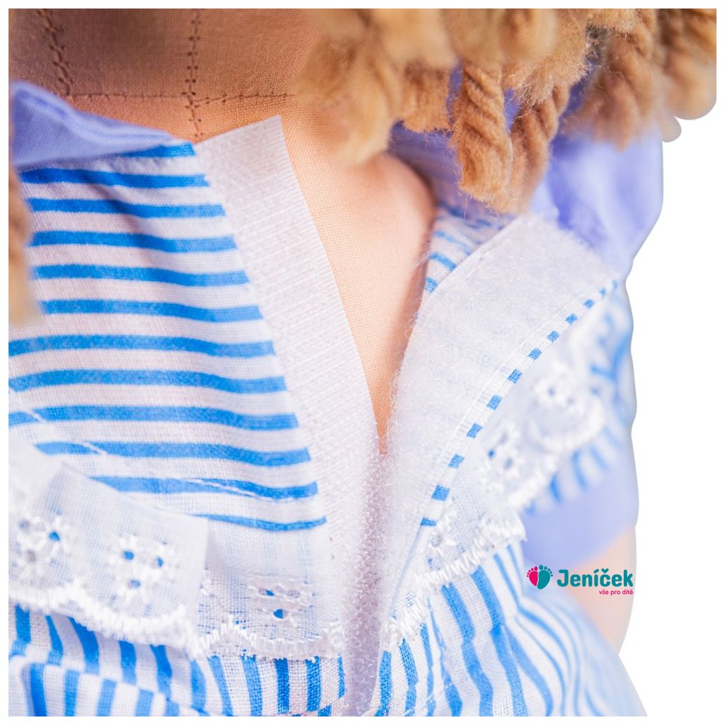 Seznamte se s Amélií - veselou, barevnou a tradiční panenkou, s níž se vaše dítě rádo pomazlí. Amélie nosí kvalitní oblečení v hezkém modro-bílém provedení a těší se na společné přátelství s vaším dítětem. (Řada zahrnuje panenky s různými jmény a oblečením.)
