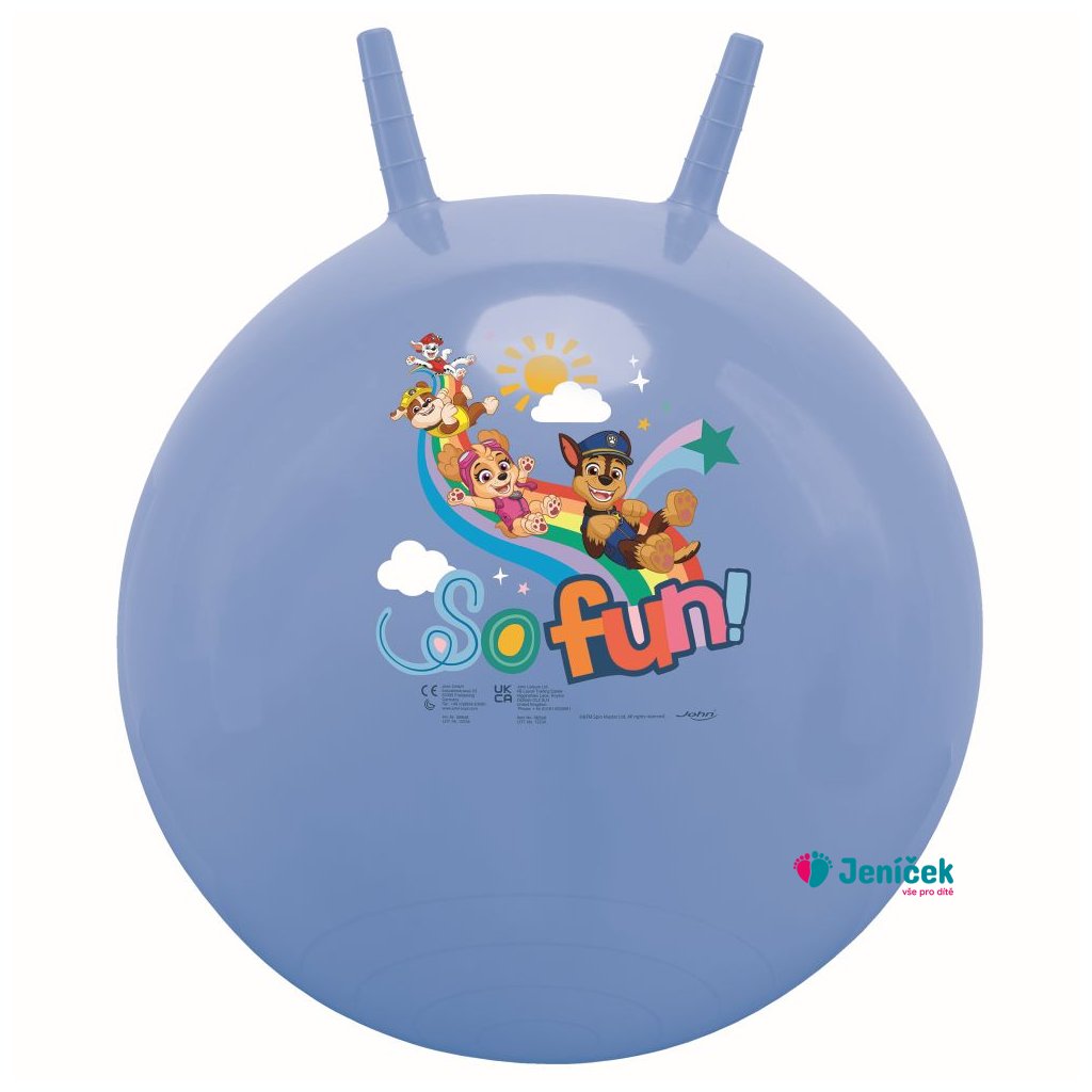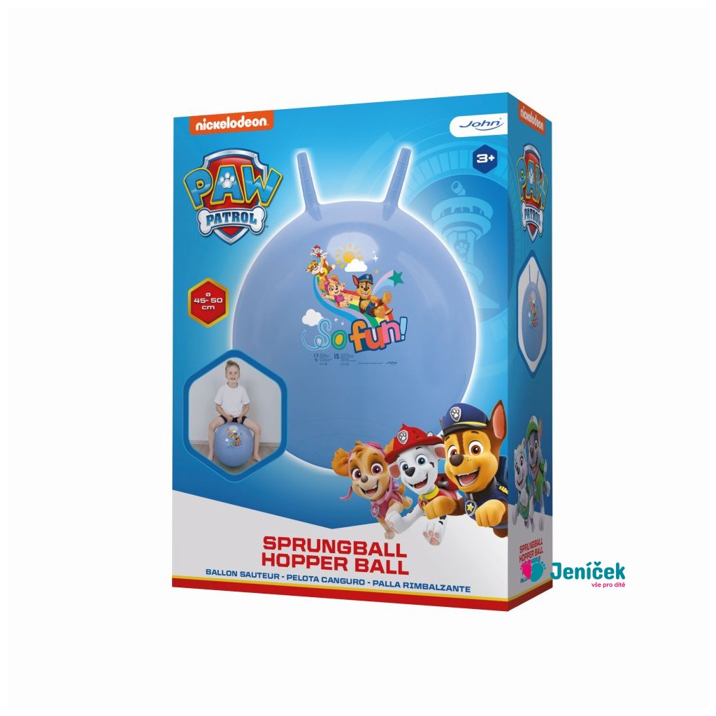 Dětské kvalitní PVC hopsadlo v licenci Paw Patrol. Průměr nafouklého hopsadla do 50cm. Hopsadlo má 2 úchyty, za které se dítě chytí a může skákat. Nosnost do 50kg. Vhodné na ven i na doma. Baleno v krabici. Doporučený věk 3+