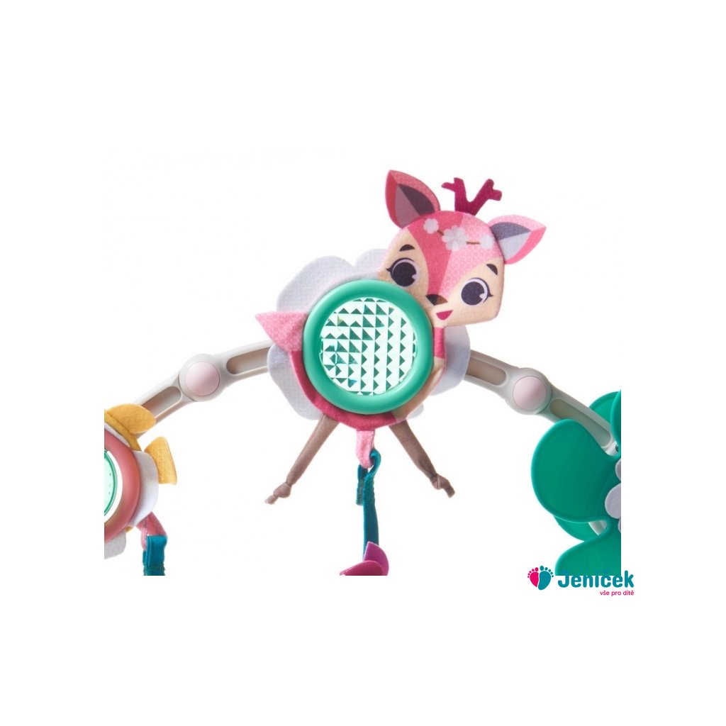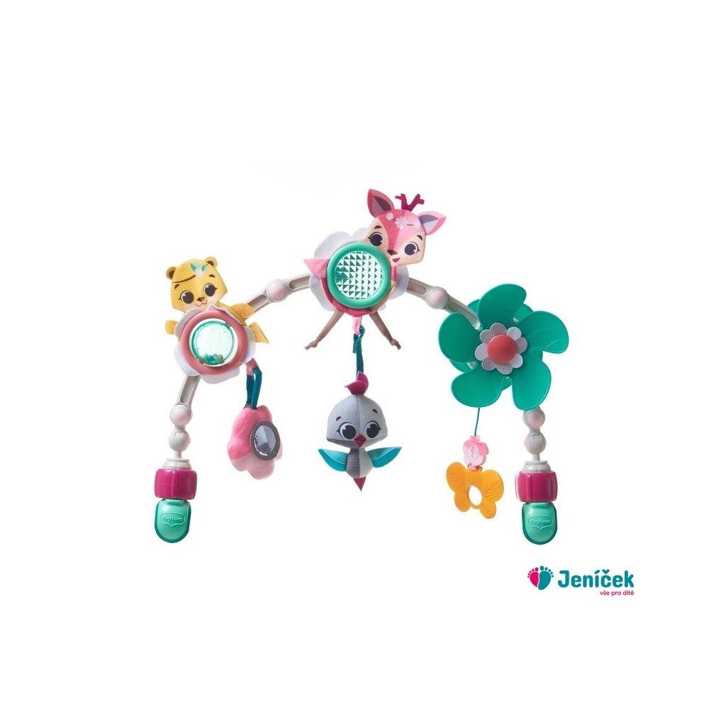 Hrazda Tiny Love je vhodná na autosedačku, kočárek či lehátko. Hrazda nabízí množství aktivit, např. chrastítko, kousátko, otáčecí květinu nebo bezpečné zrcátko. Díky univerzálním plastovým klipům ji lze snadno a rychle připevnit. Vhodné pro děti od narození.