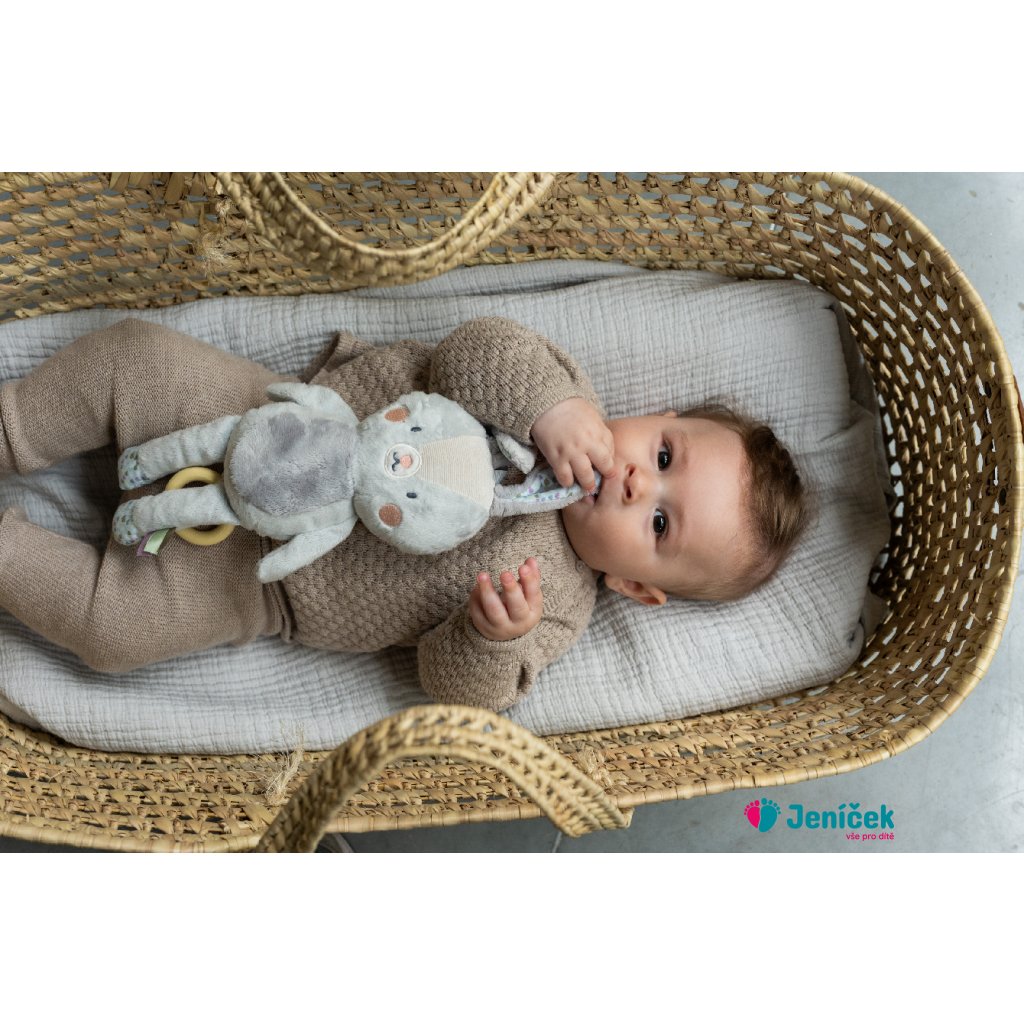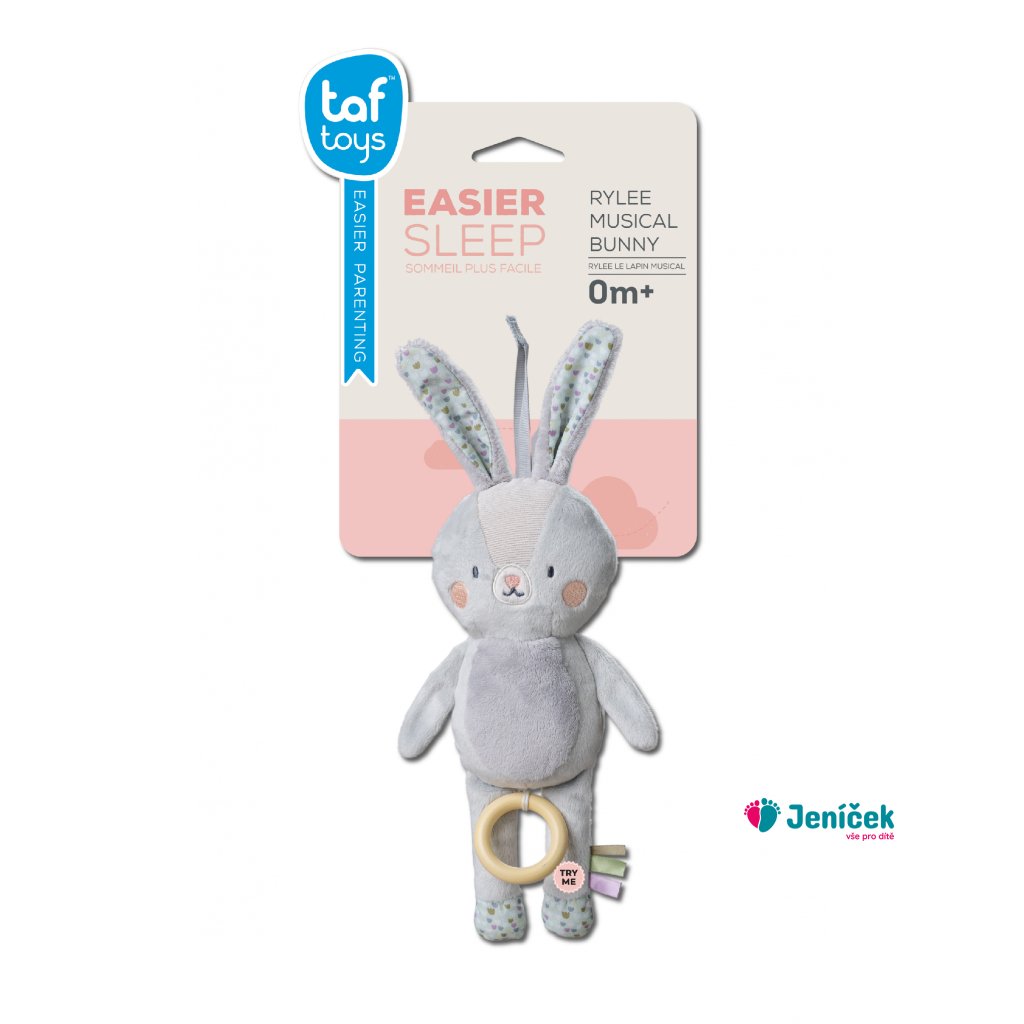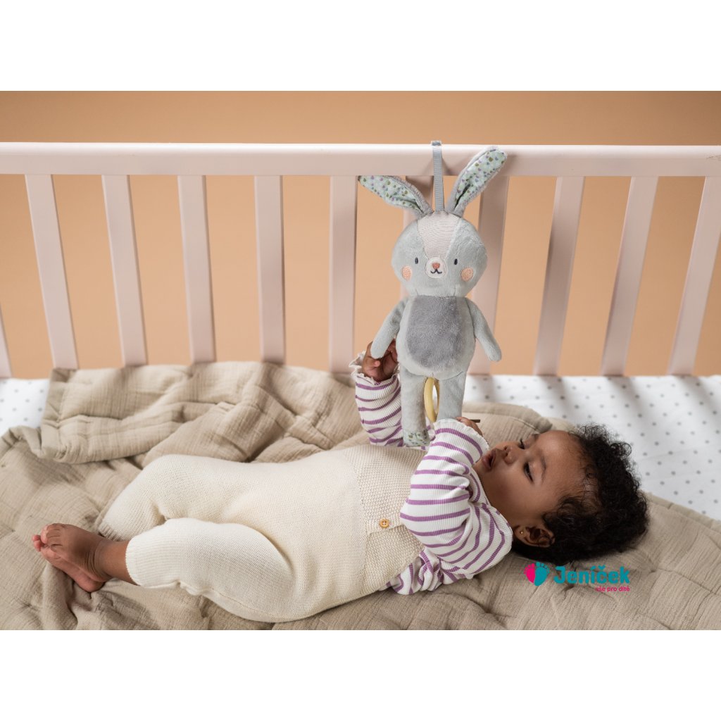 Závěsná hračka v podobě něžného králíčka Rylee s natahovacím hudebním boxem zabaví i uklidní vaše miminko doma i na cestách. Hudba se aktivuje zatáhnutím za dřevěný kroužek, dítě si tak může hudbu samo pouštět a učit se příčině a následku. Hračka hraje klasickou ukolébavku Johannesse Brahmse. Kompaktní a lehkou hračku snadno přibalíte s sebou na procházky i výlety. Poutko se suchým zipem umožňuje rychlé připevnění na kočárek, autosedačku či postýlku. Vhodné pro děti od narození.