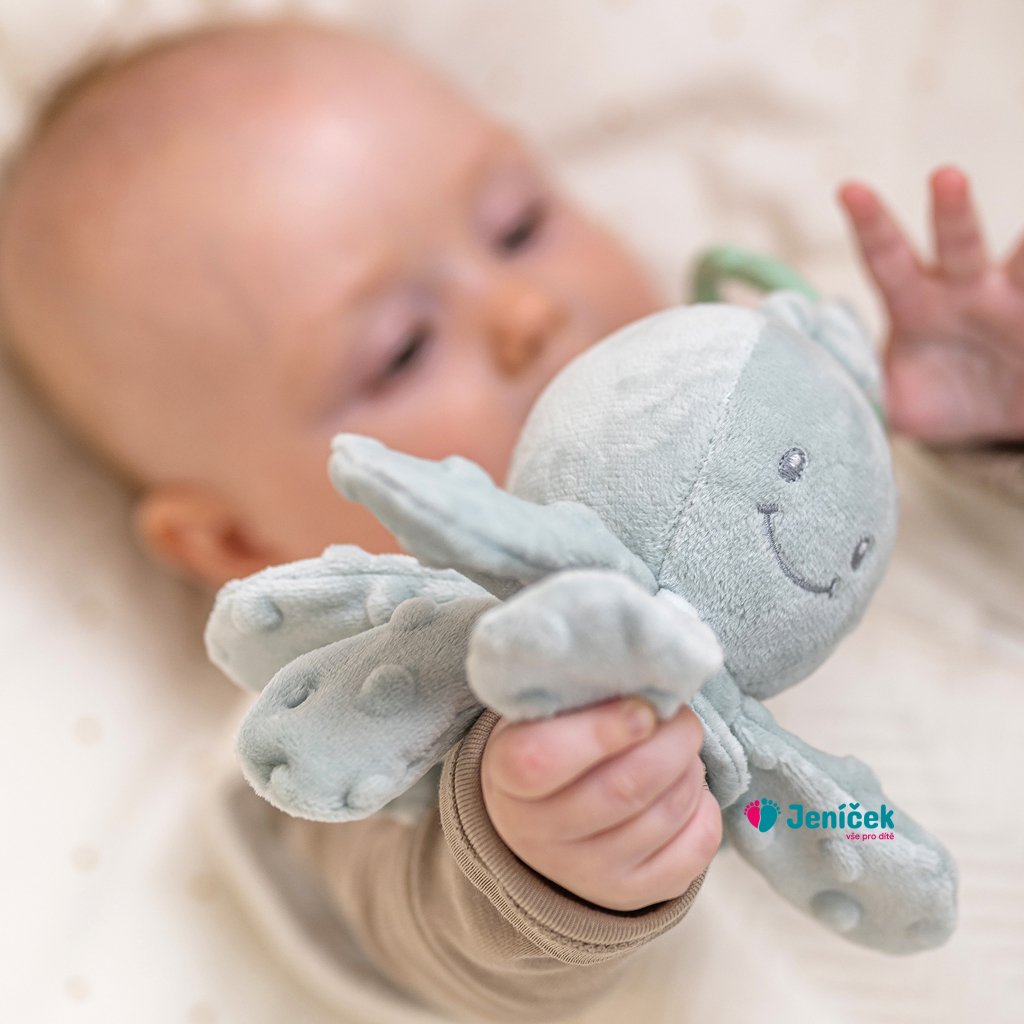 Roztomilá chobotnička, se svou krásnou srstí, si podmaňuje srdce novorozenců po celém světě. Rozkošná chobotnička nabízí nesčetné možnosti uchopení a podporuje tak rozvoj motoriky. Navíc je zde integrována vibrační funkce, která hravou formou vytříbí hmat a sluchové schopnosti dítěte a poskytne dostatek zábavy.