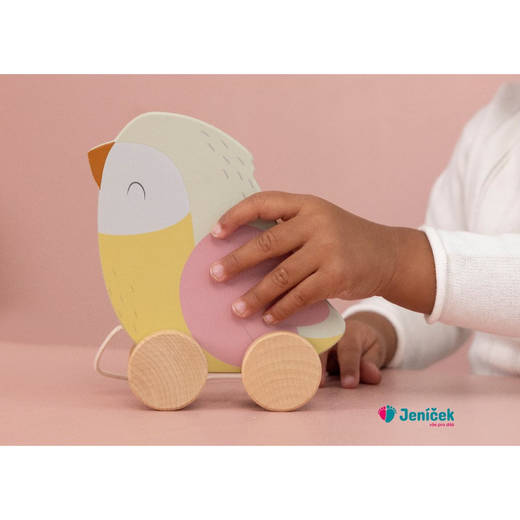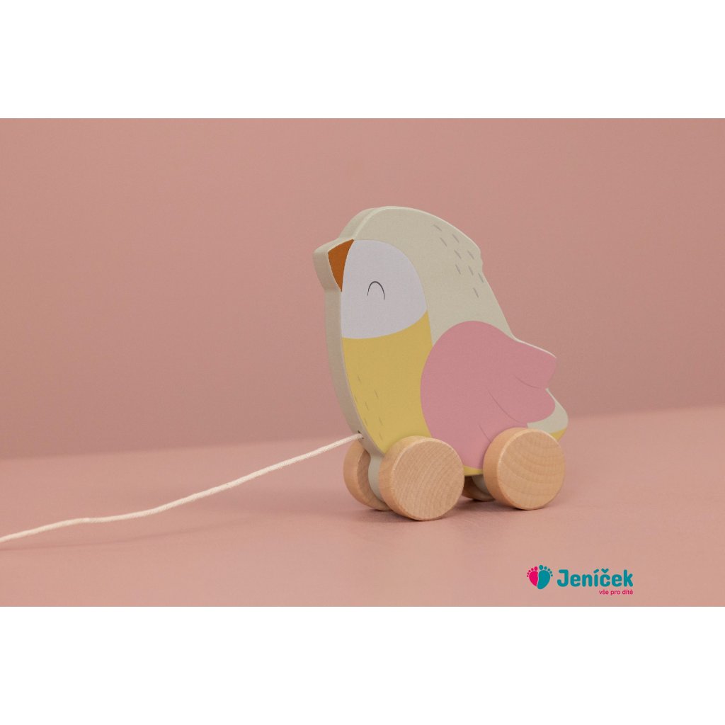 Ptáček na kolečkách v krásném dřevěném provedení má šňůrku, aby ho dítě mohlo tahat za sebou. Rozměry: 14,2 x 5,3 x 12,5 cm Vhodné pro děti od 12 měsíců.