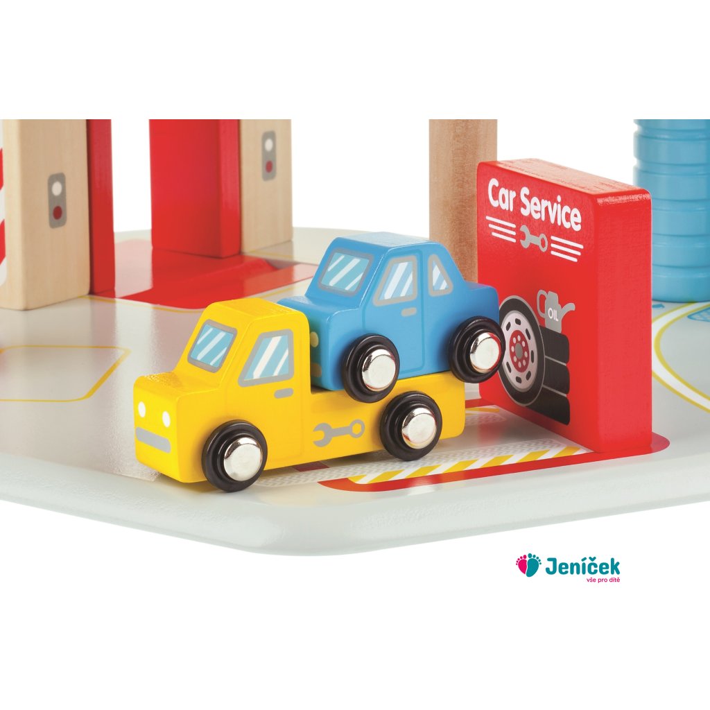 Nadšenci pro auta si zamilují tuto krásnou garáž. V balení obsahuje 3 auta, 1 odtahový vůz, ruční myčku, tankovací stojan, servis a natahovací výtah pro auta, který „kliká“ a auta dostane do parkovacího patra. Otevřete vrata z parkoviště a vyfičte po rampě dolů a domů! Nezapomeňte auto umýt... Autíčka jsou kompatibilní s vláčkodráhami. Skvělý způsob, jak děti inspirovat ke kreativní a představivé hře. Rozvíjí koordinaci ruka-oko, jemnou motoriku a zručnost. Po vybalení je nutno složit. Vyrobeno z kvalitních materiálů z odpovědných zdrojů. Odpovídá evropské bezbečnostní normě. Hračky anglické značky TIDLO Timeless Toys jsou, jak název napovídá, nadčasové dřevěné hračky vyráběné společností John Crane již od roku 1984. Všechny hračky, jež vychází z moderních trendů, nabízejí vynikající hodnotu, kvalitu, design a bezpečnost pro děti.Doplňkové parametry