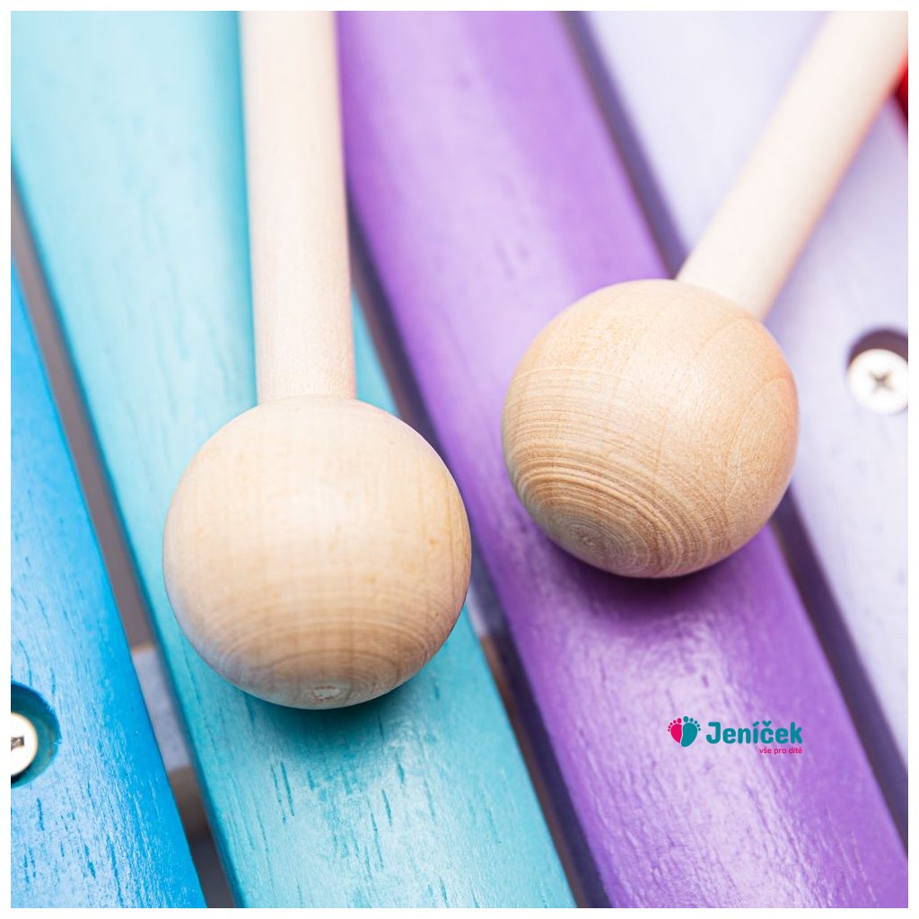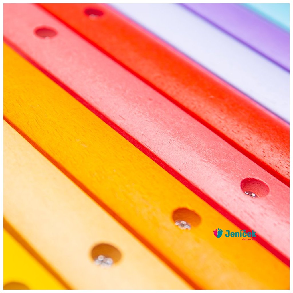 Co může být lepšího než dřevěný a barevně pestrý xylofon? Vaše dítě si může vytvářet své první melodie, nebo hrát své oblíbené písničky, a díky tomu tato hračka nebude pro něj zklamáním, ale velkou zábavou. Vhodná hračka i pro vaše batole. Oproti obrázku je na xylofonu viditelné uchycení klapek malými šroubky. Anglická značka Bigjigs byla založena roku 1985 a zpočátku se zabývala výrobou pouze dřevěných puzzlí. Majitelé vyráběli vše ručně s láskou v malém zahradním domku, své výrobky prodávali na trhu. Spokojení zákazníci výrobce motivovali k mnoha dalším nápadům a rozšíření nabídky o další dřevěné hračky. Přibylo zasílání poštou a prodej přes katalog. Spokojenost a věhlas značky rostla, takže následoval velkoobchodní prodej a pro udržení výrobních cen přesun a rozšíření výroby na východ. Nové značky kvalitních a nápaditých hraček si v Anglii všimly další velké prodejní firmy.Dnes Bigjigs hračky zůstávájí ve vlastnictví rodiny s obrovskými sklady v jiho-východní Anglii. Společnost i nadále dodává své hračky široké zákaznické základně ve Velké Británii a západní Evropě podpořená loajálním, oddaným a tvrdě pracujícím týmem zaměstnanců. Veškeré dřevěné hračky BigJigs jsou navržené v Anglii a vyrobené jak tamtéž, tak i ve východní Evropě a jihovýchodní Asii. Kvalita hraček značky BigJigs je testována a odpovídá všem podmínkám pro prodej v EU a USA.