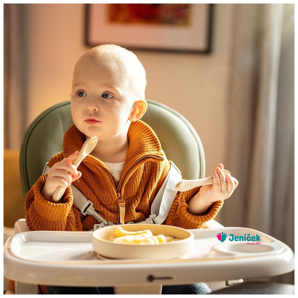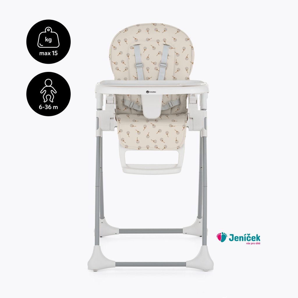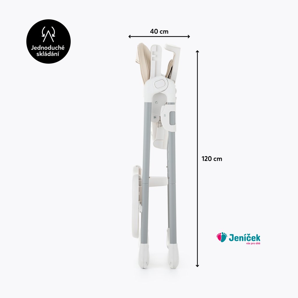 Péče o životní prostředí, kterou jsme při tvorbě této židle zohlednili, nezastínila nejdůležitější aspekty výrobku – byl totiž navržen tak, aby co nejbezpečněji zlepšil každodenní život děťátka i rodičů. Židle má všechny funkce, které usnadňují každodenní krmení: Lze ji snadno sundat a vyčistit, má 5-bodové bezpečnostní pásy, nastavitelnou opěrku zad, nastavitelnou opěrku nohou, nastavitelnou výšku, dvě polohy pro podnos s horní částí, kterou lze mýt v myčce nádobí. Stabilní konstrukce židle zajistí bezpečnost vašeho dítěte bez ohledu na to, jak je aktivní nebo pohyblivé. Vysoce kvalitní provedení, promyšlená konstrukce, moderní a originální design a kompaktní skládání jsou nadčasové vlastnosti, které zajistí pohodlí pro vaše dítě od okamžiku, kdy se naučí sedět.