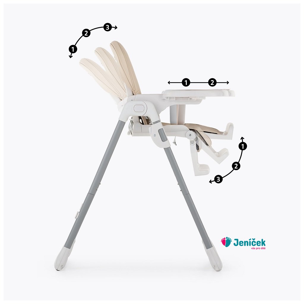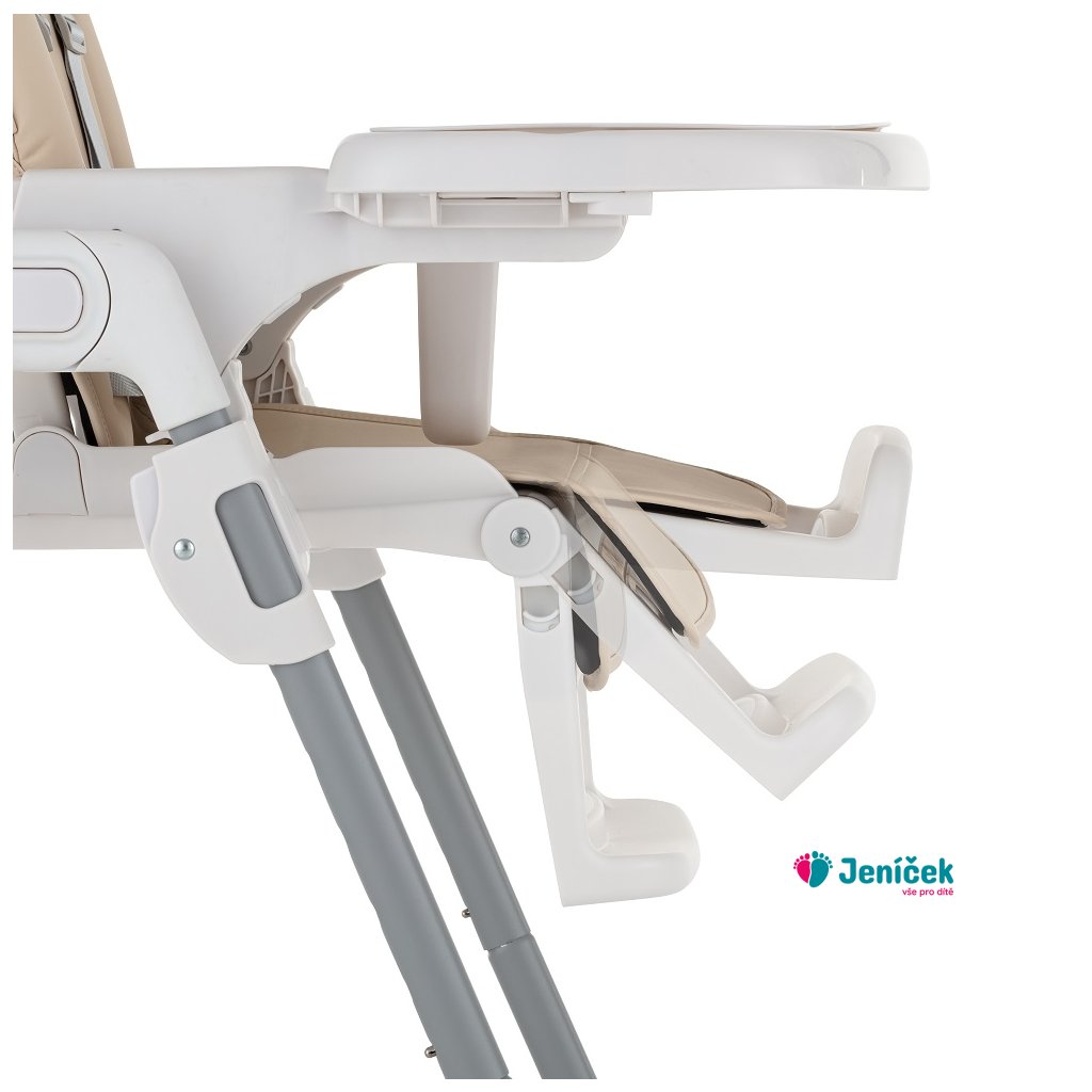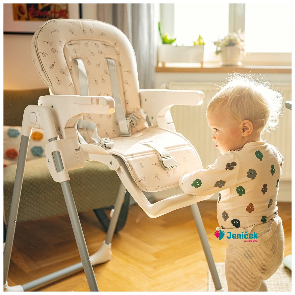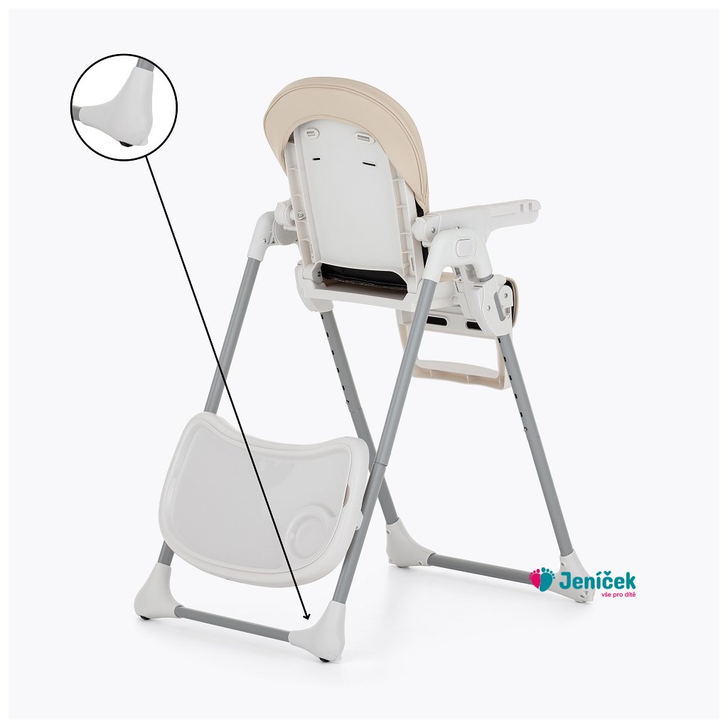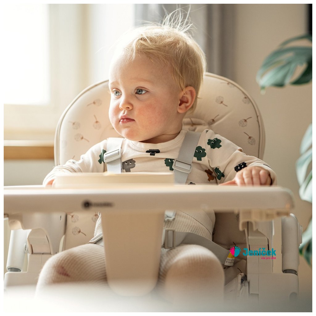 Péče o životní prostředí, kterou jsme při tvorbě této židle zohlednili, nezastínila nejdůležitější aspekty výrobku – byl totiž navržen tak, aby co nejbezpečněji zlepšil každodenní život děťátka i rodičů. Židle má všechny funkce, které usnadňují každodenní krmení: lze ji snadno sundat a vyčistit, má 5-bodové bezpečnostní pásy, nastavitelnou opěrku zad, nastavitelnou opěrku nohou, nastavitelnou výšku, dvě polohy pro podnos s horní částí, kterou lze mýt v myčce nádobí. Stabilní konstrukce židle zajistí bezpečnost vašeho dítěte bez ohledu na to, jak je aktivní nebo pohyblivé. Vysoce kvalitní provedení, promyšlená konstrukce, moderní a originální design a kompaktní skládání jsou nadčasové vlastnosti, které zajistí pohodlí pro vaše dítě od okamžiku, kdy se naučí sedět.
