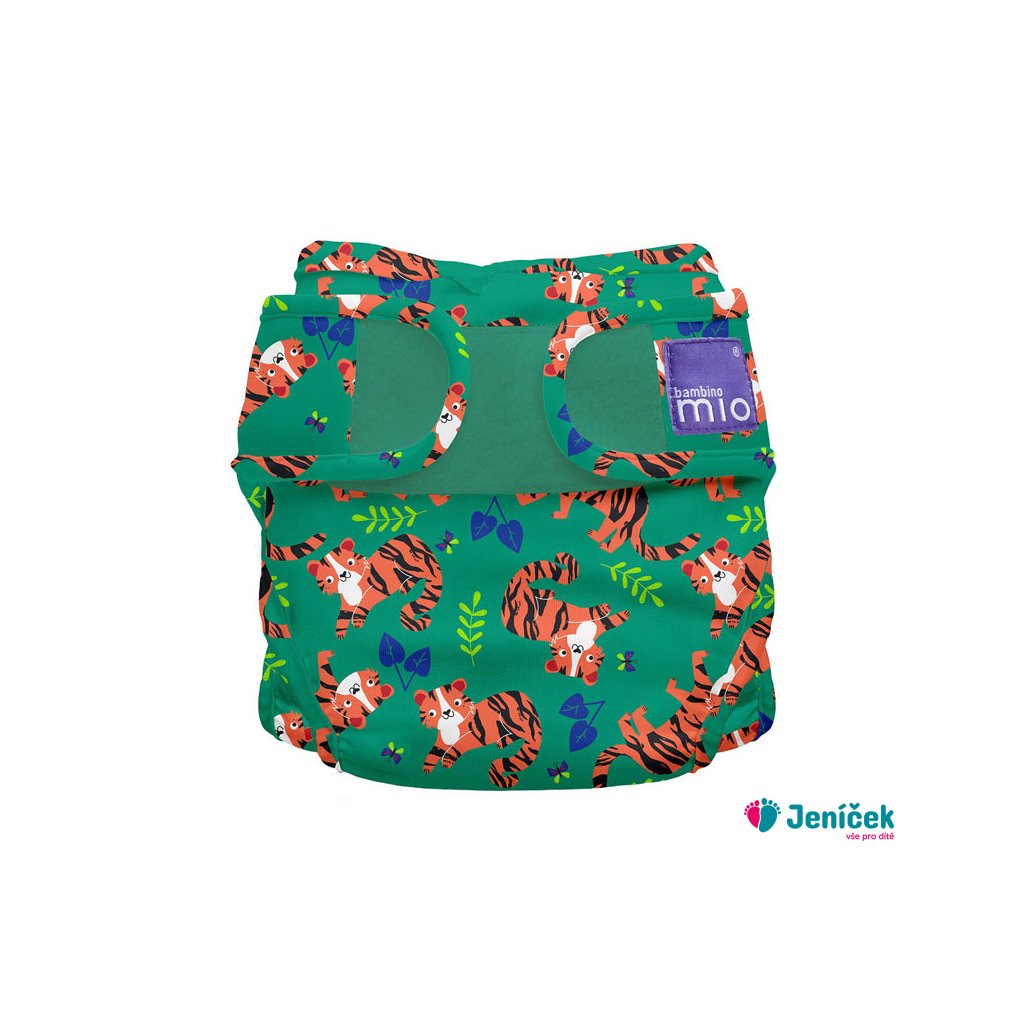 Svrchní plenkové kalhotky Miosoft Tiger Tango patří k dvoudílnému systému Bambino Mio, kde jedna velikost originální plenky a dvě velikosti plenkových kalhotek budou stačit od narození do doby, kdy bude vaše děťátko chodit na nočník. Díky svému zapínání na suchý zip je práce s nimi velice rychlá, jednoduchá a umožňuje přizpůsobení každému dítěti. Tvar suchého zipu brání vytváření ostrých rohů a tak chrání před odřením jemné dětské pokožky. Vnitřní polyuretanová vrstva propouští menší molekuly plynů a par avšak zabraňuje průchodu kapalin a tekutin. Dítě se tak nezapaří, ale ani neznečistí své okolí. Pozor, působení dětských olejíčků snižuje životnost nepropustné vrstvy.