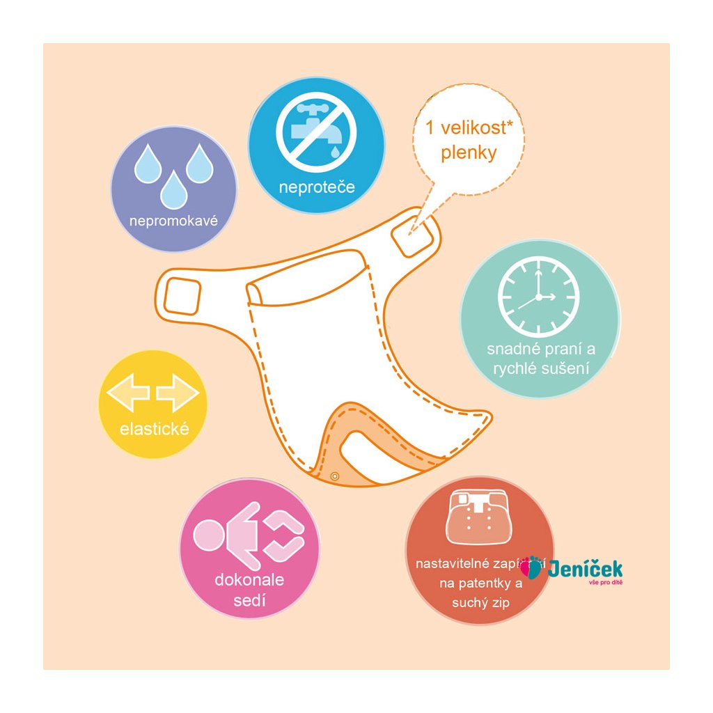 - Jednovelikostní plenku lze používat od narození po nočník a proto není potřeba zakoupit další pleny.