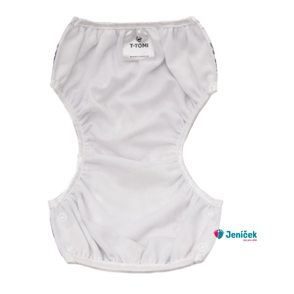 Plenkové plavky T-TOMI v moderním nadčasovém designu jsou určeny pro plavání miminek od 5 do 12 kg. Tyto plavky jsou vhodné jak pro novorozence, tak i pro batolata, a to díky jednoduchému systému patentek, pomocí kterých se požadovaná velikost snadno nastavuje. Vnitřní strana plenkových plavek je vybavena praktickou síťkou, která zachytí případné "nehody" miminka ve vodě. Velkou výhodou těchto plenkových plavek T-TOMI je jejich ekonomická stránka oproti jednorázovým plenkovým plavkám.