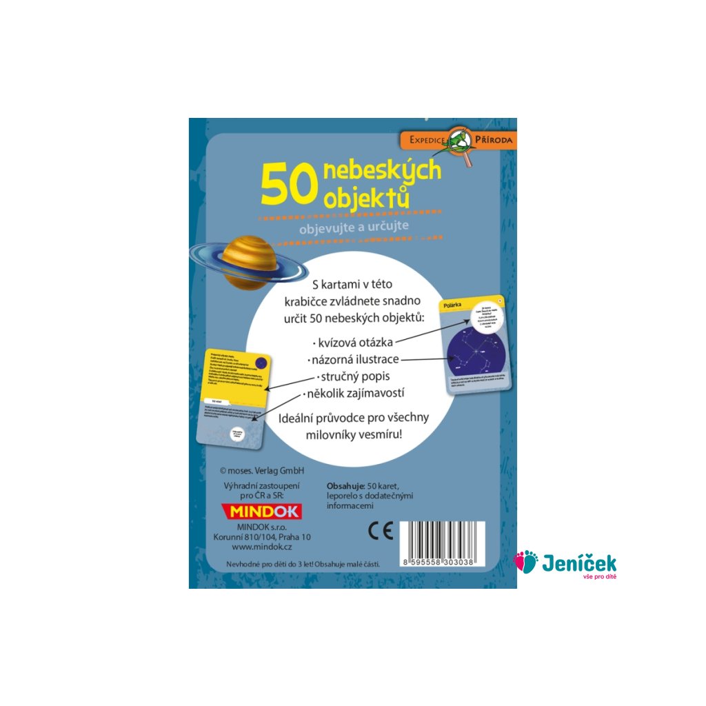 Díky kartám v této krabičce zvládnete hravě určit 50 nebeských objektů - planet, hvězd i souhvězdí. Na kartách najdete kvízovou otázku, názornou ilustraci, základní informace a také několik zajímavostí. Ideální průvodce pro všechny milovníky přírody! Pro 1 hráče. Věk 6+