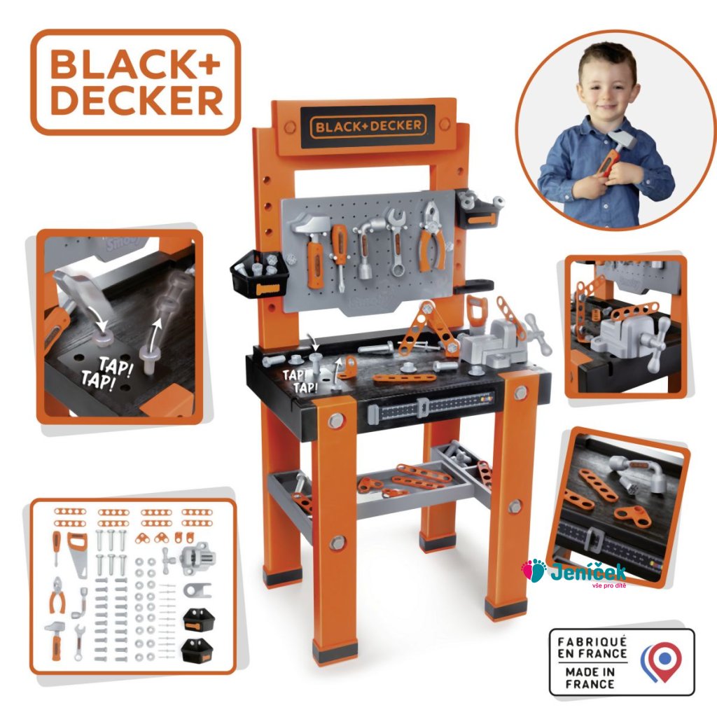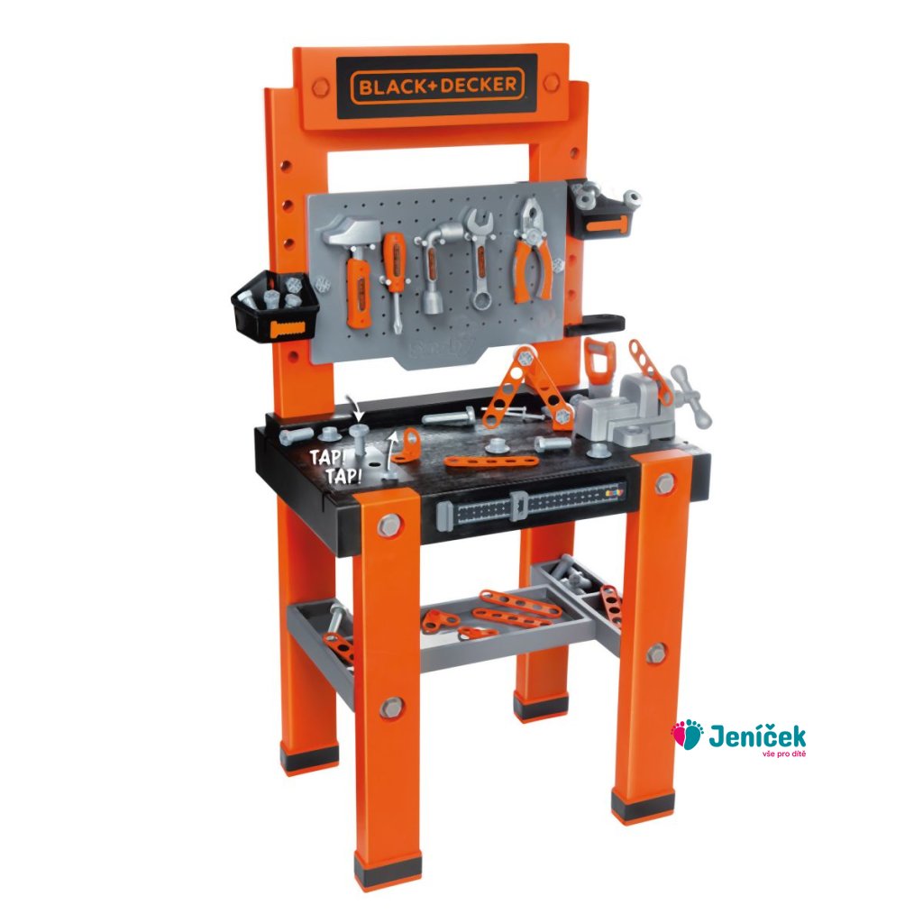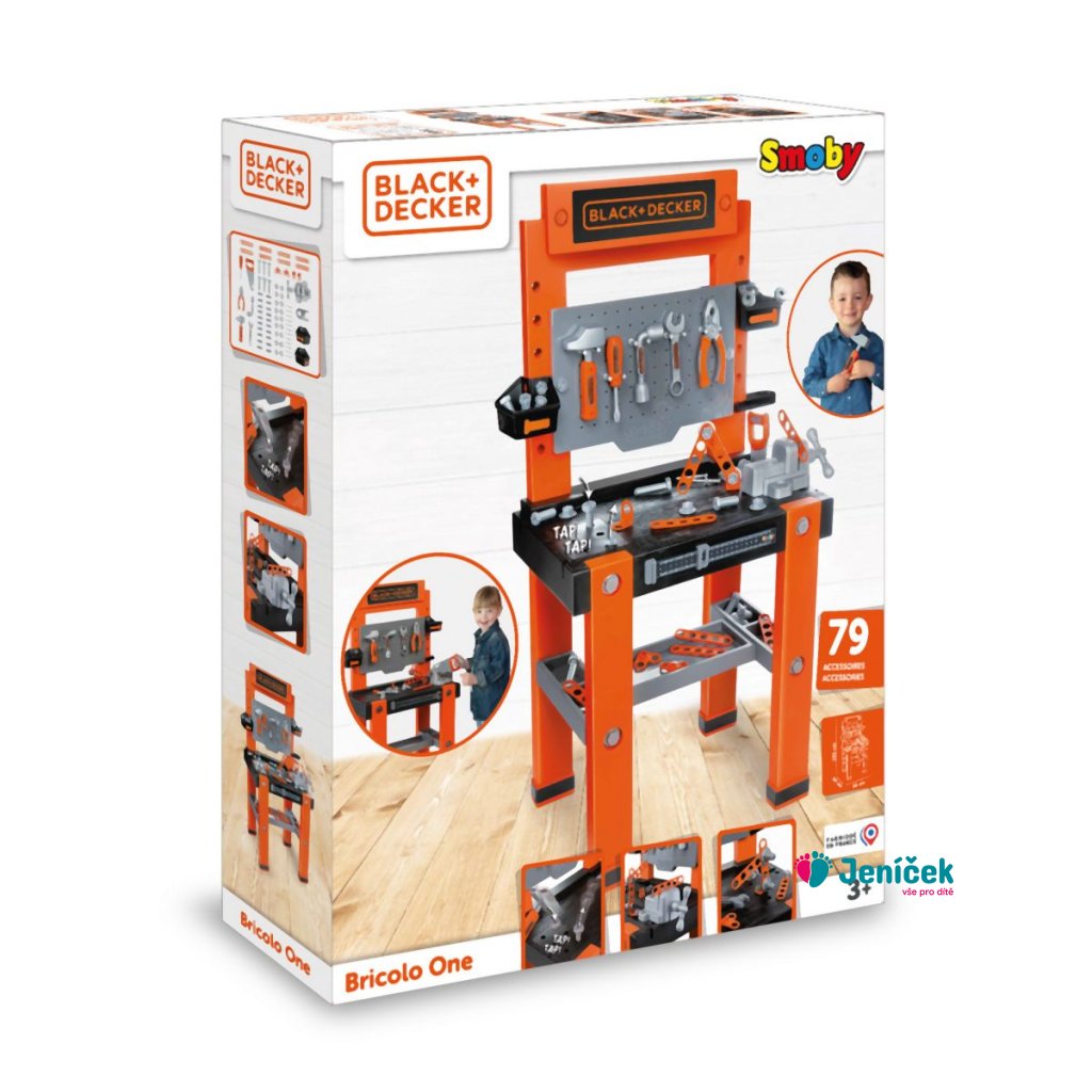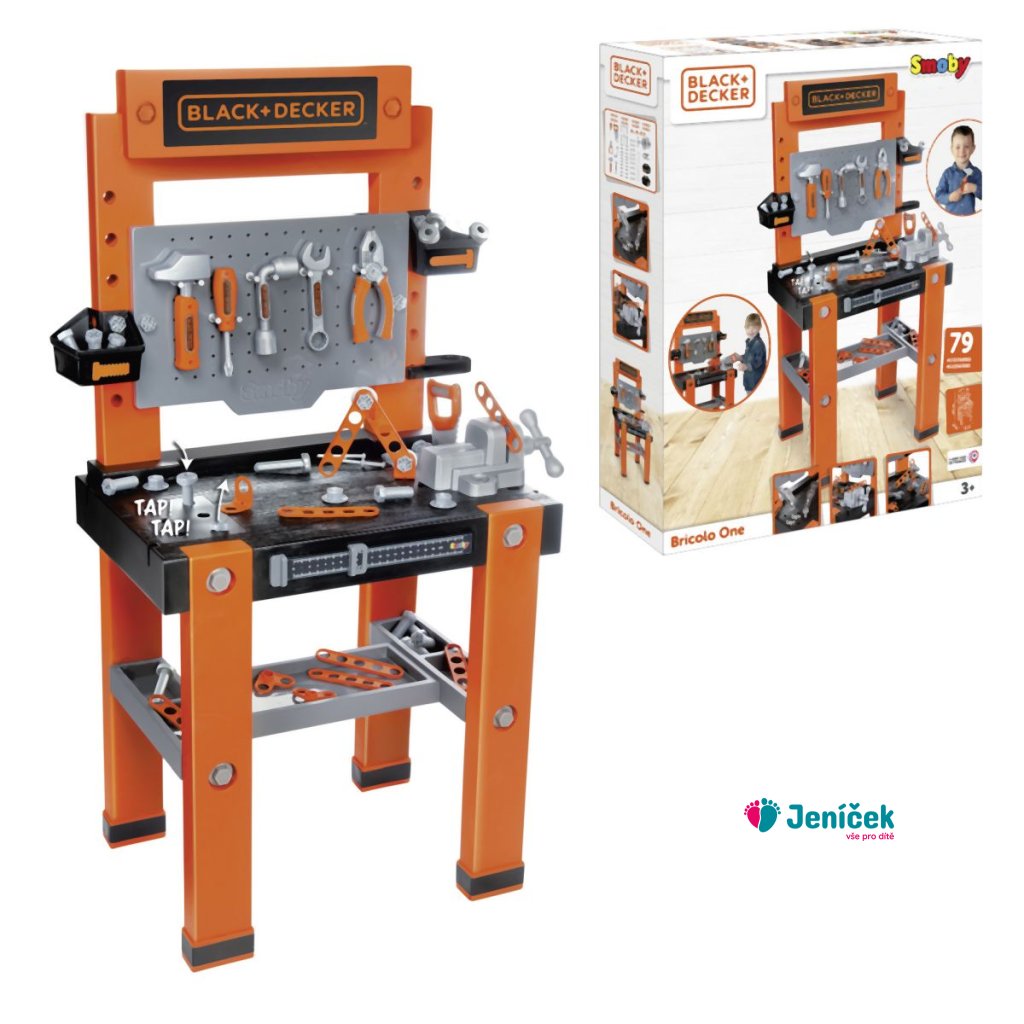 Realistický pracovní stůl s příslušenstvím. Součástí je kladivo, šroubovák, kleště, svěrák a mnoho dalšího. Celkem obsahuje 75 ks příslušenství. Rozměry: 56 x 103 x 34 cm.