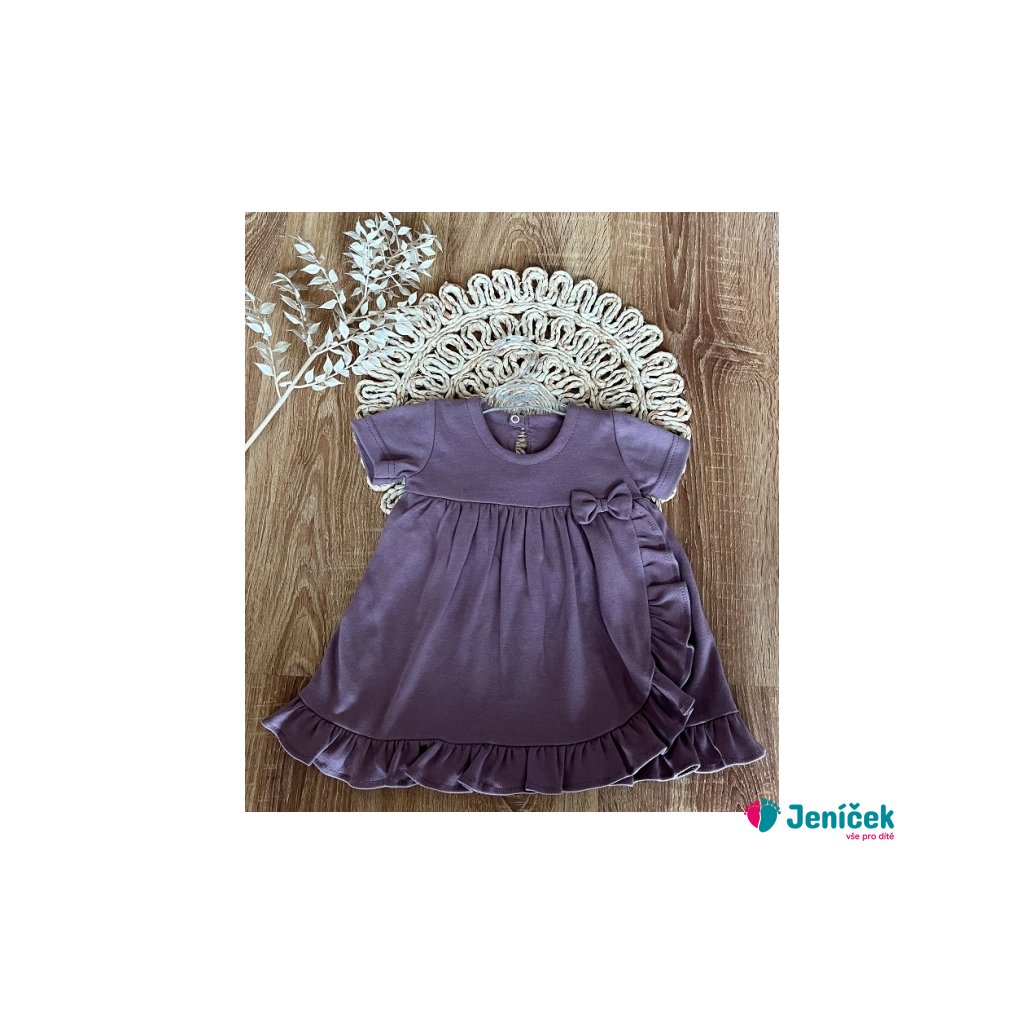 Kojenecké šaty s volánky, kr. rukáv, Mamatti, Puntík, švestková