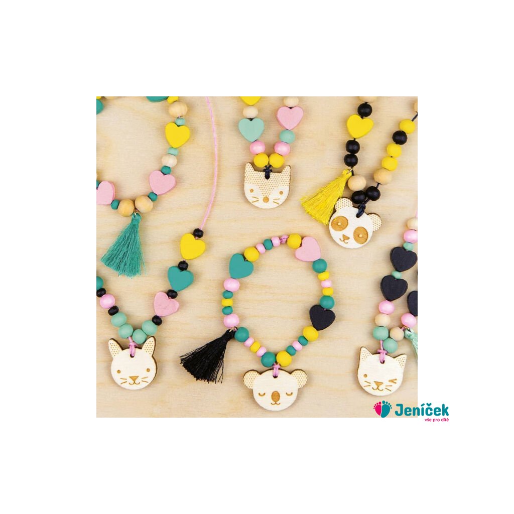 Promáčknutá kovová krabička, nové zboží bez závad. Souprava pro výrobů šperků dle vlastní fantazie obsahuje velké množství dřevěných korálků, odzdob a přívěsků, také ale šňůrky a bezpečnou navlékací jehlu. Sada je spolu s návodem k použití balena v praktickém plechovém kufříku vybaveném uchem. Hlavní vlastnosti: 120 korálků, 25 srdíček, 5 střapců, 5 přívěšků, 2 šňůrky a navlékací jehlapraktické balení