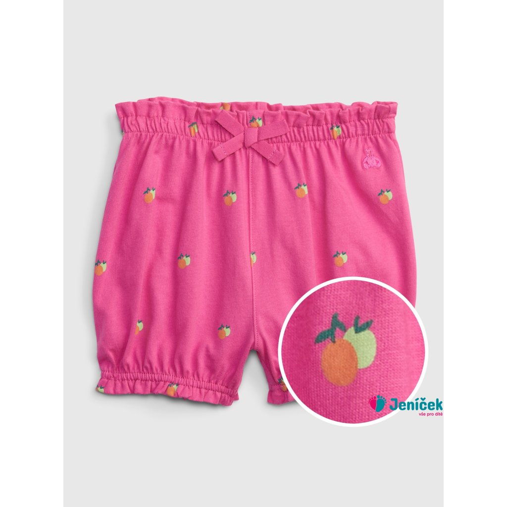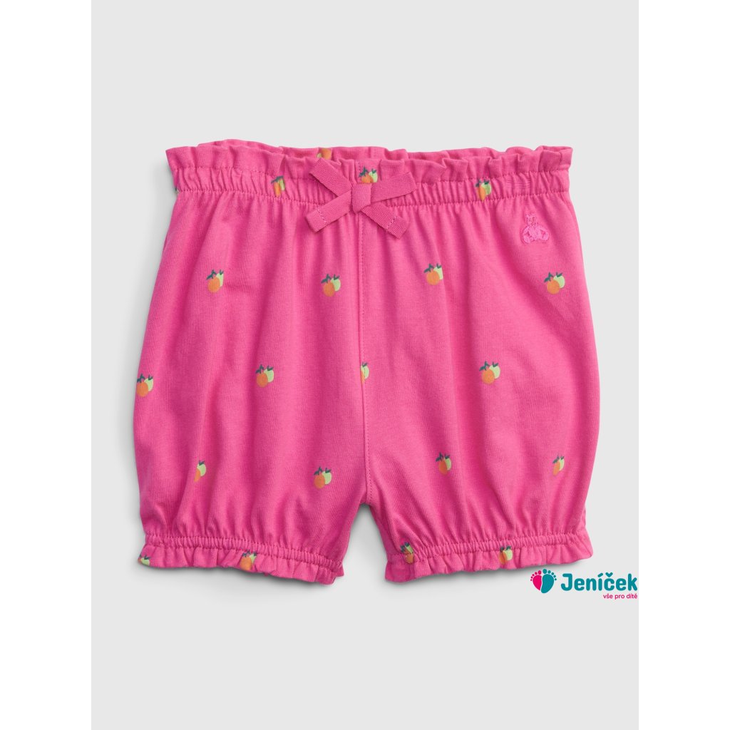 Kojenecké růžové kraťasy s drobným vzorem. Vyrobeny ze 100% organické bavlny. Pružný pas s našitou mašličkou. Pružné krátké nohavice. Měkký bavlněný úplet.Oblečení vyrobené ze 100% organické bavlny je nejen šetrné k životnímu prostředí, ale k vaší pokožce. Při pěstování nejsou použity žádné škodlivé syntetické pesticidy ani hnojiva. Více se dozvíte na Gap for Good.Seznamte se s roztomilým méďou Brannan, který je maskotem GAP již 20 let. Drobnou značku medvídka najdete jen u těch nejhebčích a nejměkčích oblečků pro vaše děťátko. Medvídek Brannan je tu pro vás. Vyzkoušejte měkkost a hebkost těchto materiálů, které zajistí vašemu miminku pohodlí po celý den. 100% organická bavlna