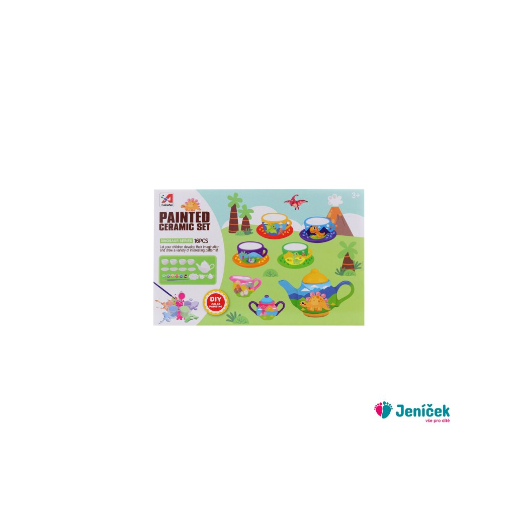 Keramická sada čajového servisu k malování. Balení obsahuje konvičku, mléčenku, cukřenku, 4 hrnečky, 4 podšálky, paletku,6 barviček a štěteček. Materiál doplňků je plast. Baleno v krabici. Rozměry balení cca 30x19,5x6,5 cm. Věk 3+