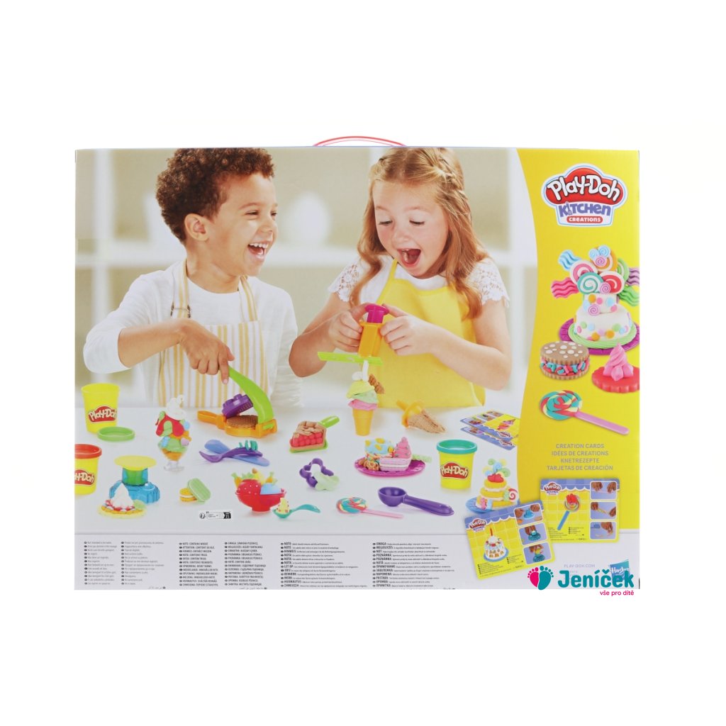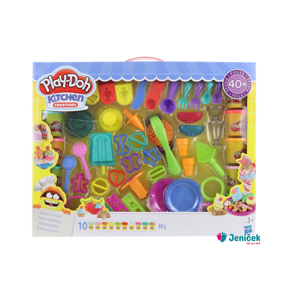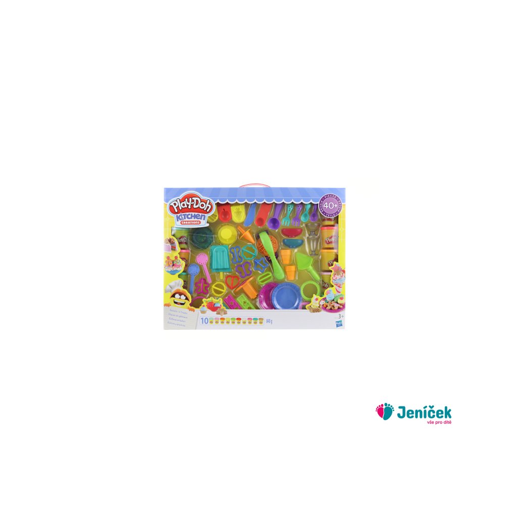 Velká sada oblíbené Play-Doh . Balení obsahuje 10 velkých kelímků modelovací hmoty a 40 plastových doplňků, jako např. tvořítka, vykrajovátka nebo nádobí. Rozměry balení cca 58x45x7,5 cm. Věk 3+