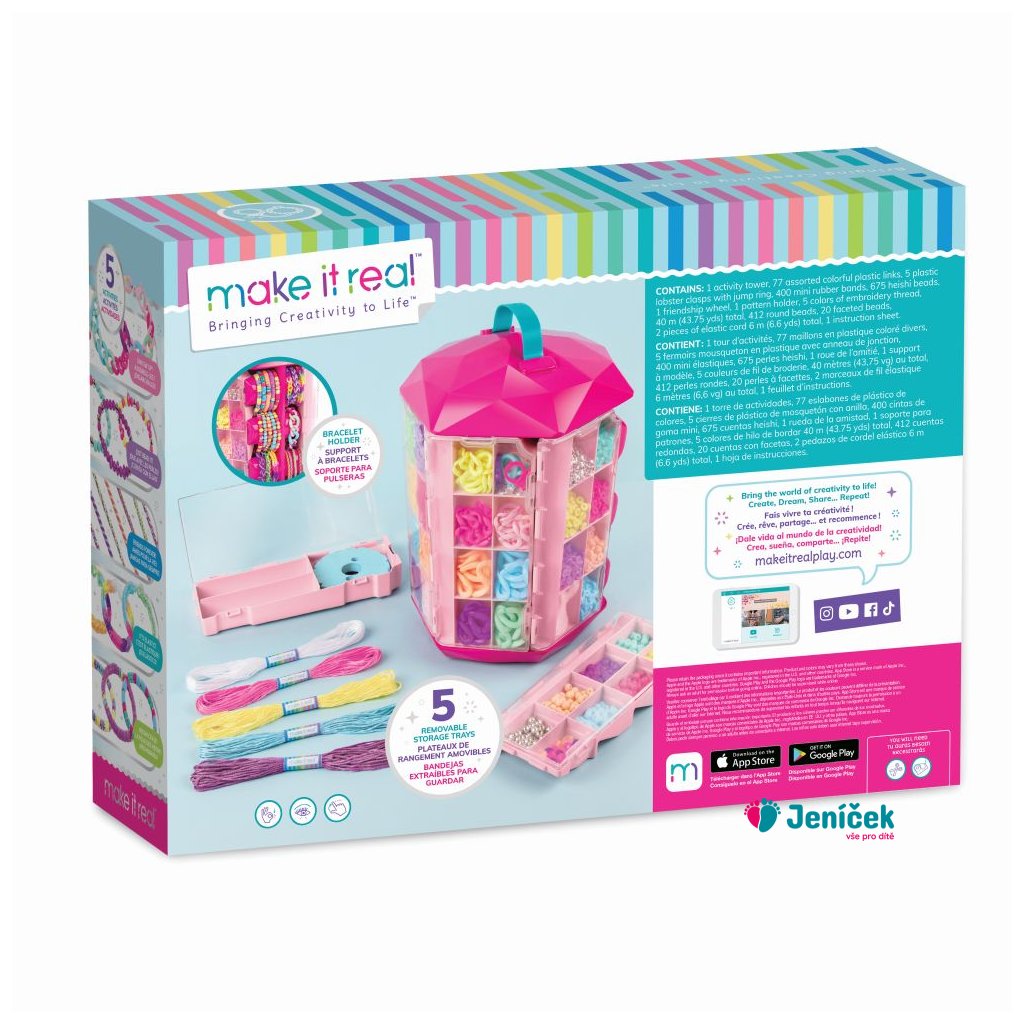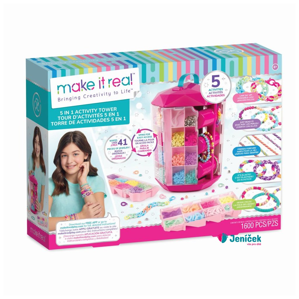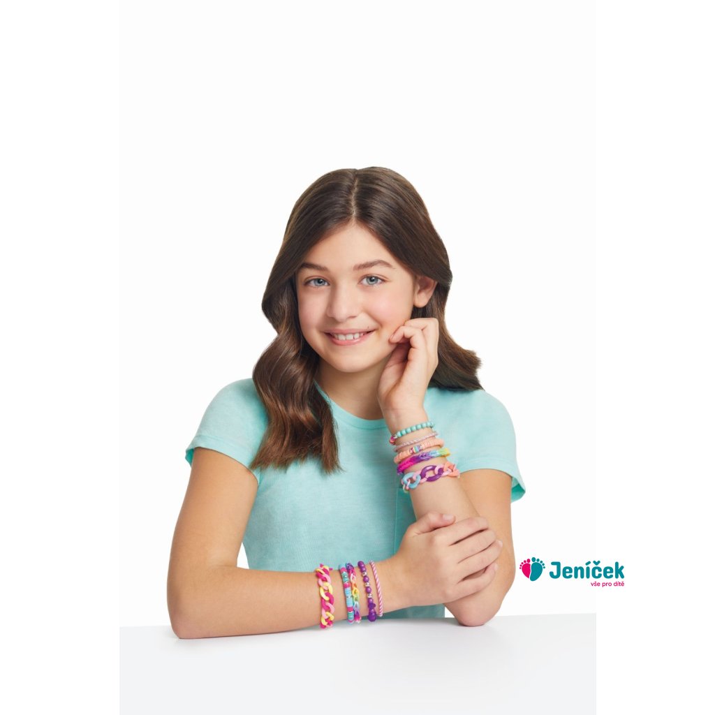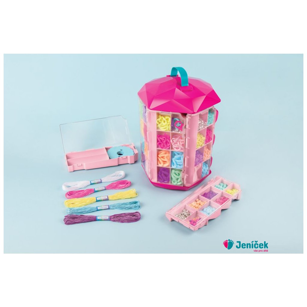 Velký set 5 v 1 na výrobu náramků je ideálním dárkem pro každou šikovnou slečnu. Balení obsahuje vše potřebné ke kreativní tvorbě náramků. Velký set obsahuje celkem 1600 kusů. Komponenty jsou uloženy v krabičkách s přepážkami dle druhu náramku. Součástí sady jsou různo-barevné korálky, abecední korálky, kovové a metalické korálky, barevné vyšívací nitě, barevné gumičky, háček, přívěsky, omalovánky, tužky, 2 archy samolepek, šablony, humří sponky a elastické šňůrky. Vyráběním náramků se zdokonaluje jemná motorika prstů, kreativita a malé šikulky se na dlouhou dobu zabaví. Vhodné pro dívky od 8 let.