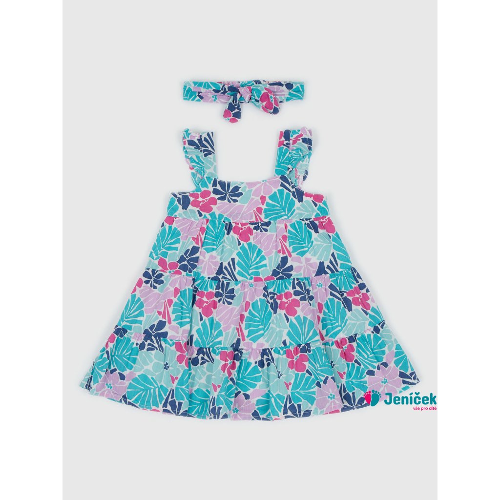 Baby květované šaty. Široká ramínka. Čelenka do vlásků. Příjemný materiál. 55% bavlna, 45% viskózaDoplňkové parametry
