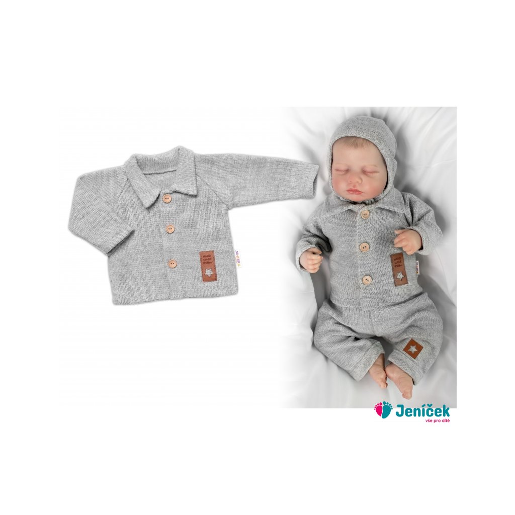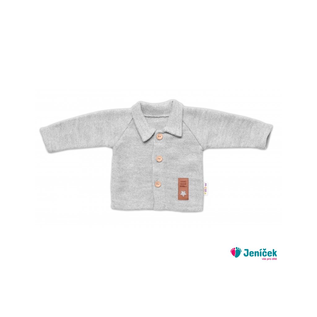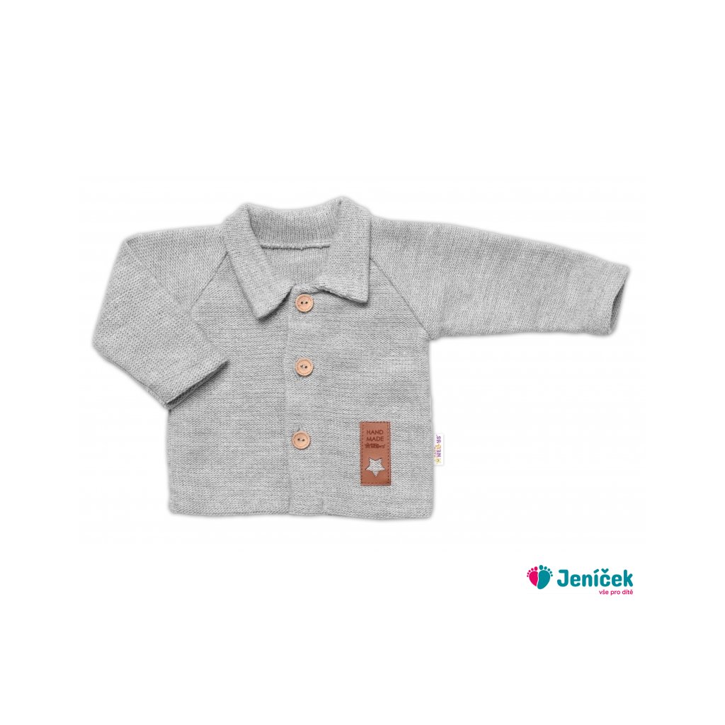 Pletený svetřík s knoflíčky Boy, Baby Nellys, šedý, vel. 62