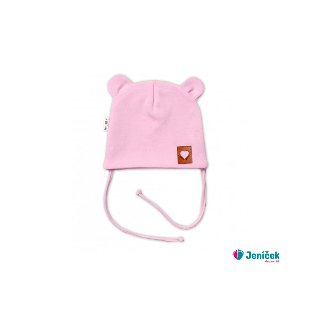 Bavlněná dvouvrstvá čepice s oušky na zavazování TEDDY - růžová, Baby Nellys