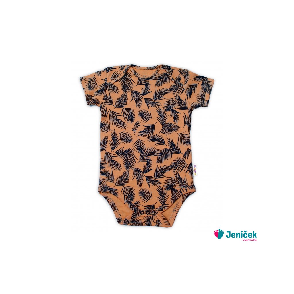 Baby Nellys Bavlněné body krátký rukáv, Palmy - medové