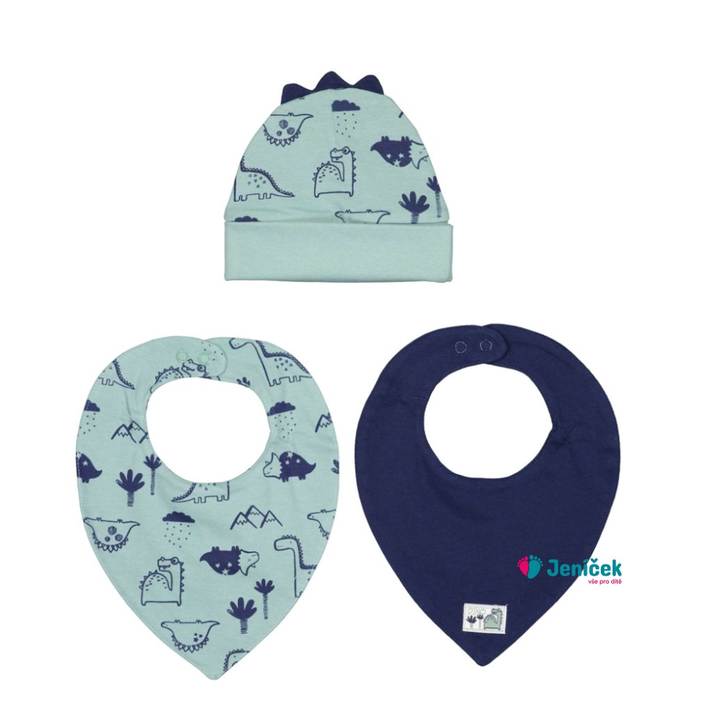 BLUE 3 - dílná sada čepička + bryndáček 2 ks Dino Jungle