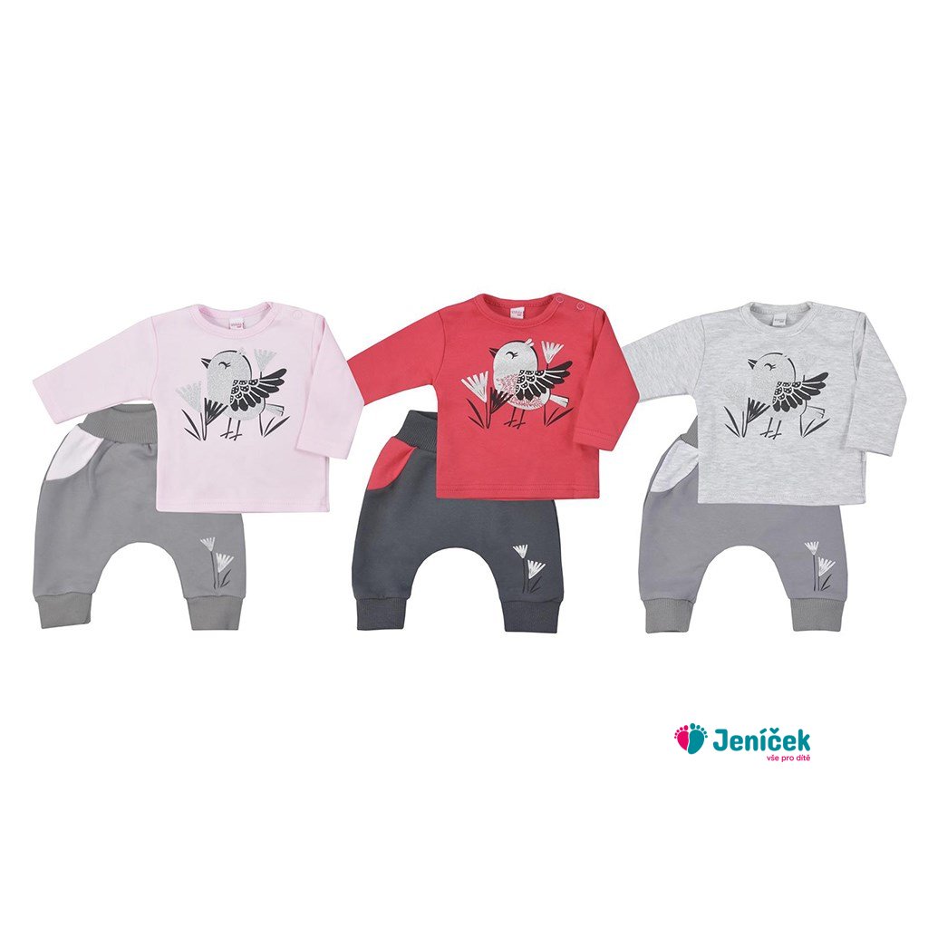 2-dílná bavlněná souprava Koala Birdy. Součástí soupravičky jsou tepláčky a tričko. Tepláčky mají moderní střih se sníženým sedem, který jim dodává ten správný šmrc, jsou zdobené obrázkem a ukončené širokým pružným lemem. Tričko je zdobené roztomilým obrázkem. Praktické zapínání na cvočky na ramínku velmi usnadní oblékání. Materiál: 100% bavlna.