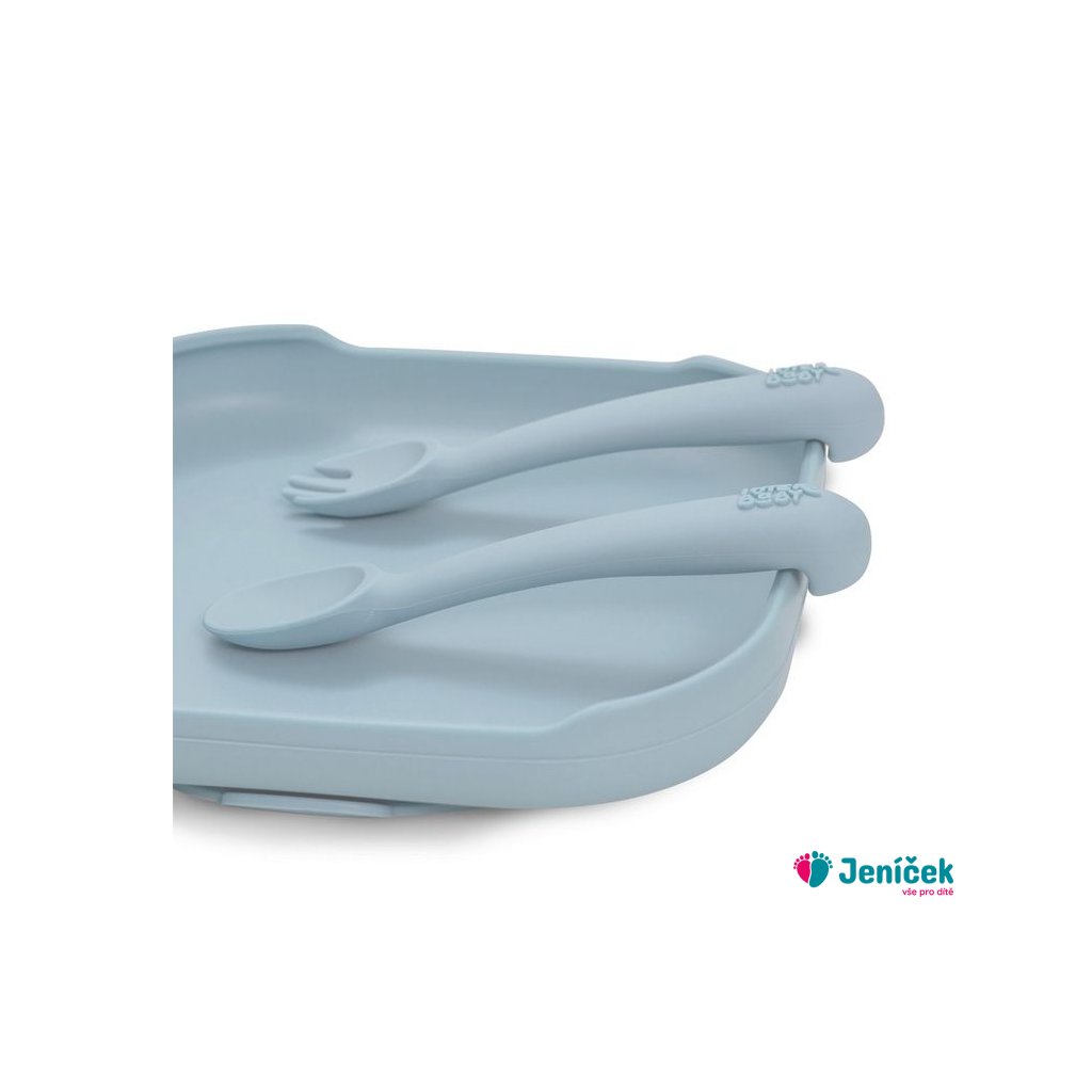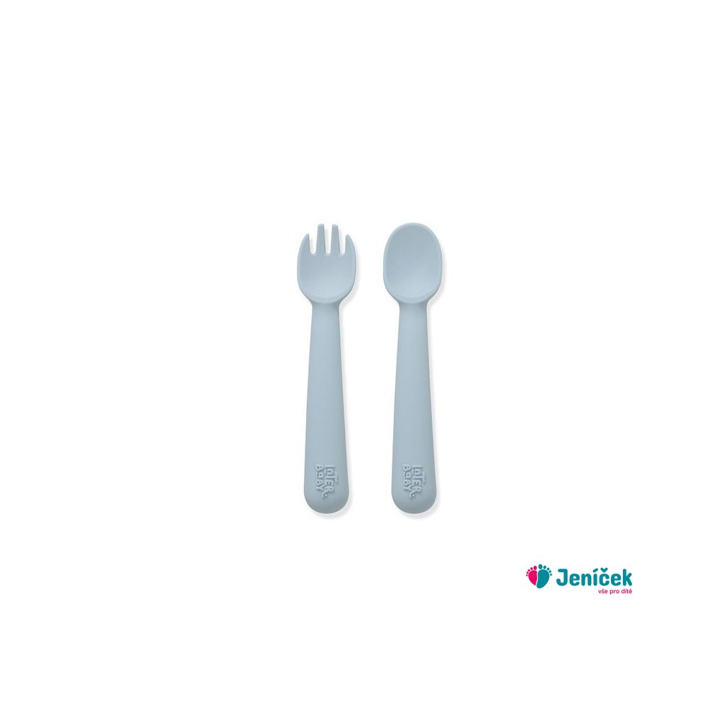 INTERBABY | SET silikonová LŽIČKA + VIDLIČKA - modrý