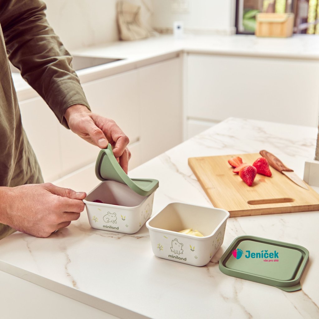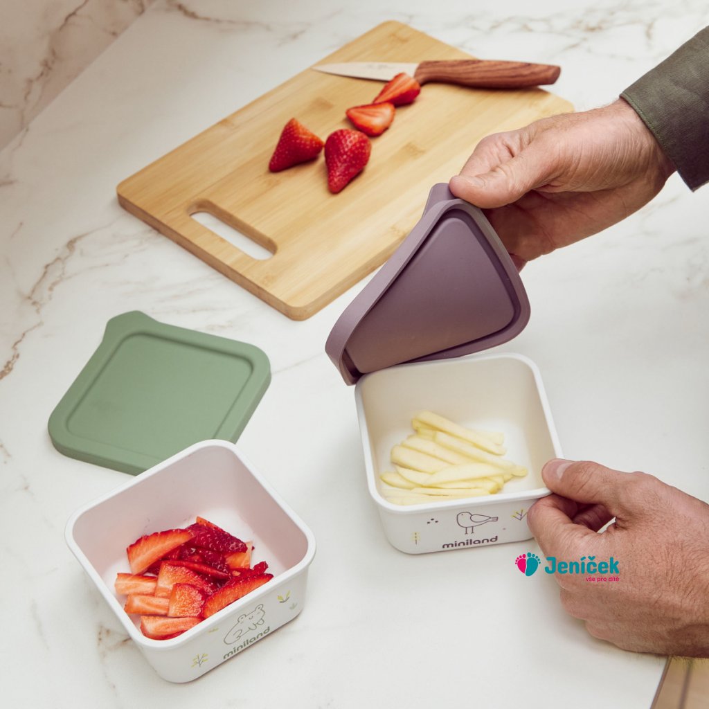 Misky s krásným potiskem jsou vyrobeny z materiálu 100% přírodního původu. Misky jsou ideální pro bezpečné uchování doma připravených dětských příkrmů. Hermetické silikonové víčko chrání obsah misky a pomáhá udržet příkrm déle čerstvý. Misky jsou vhodné do myčky, lednice i mrazáku. Nejsou určeny pro ohřívání v mikrovlnné troubě. Objem jedné misky: 400 ml Složení: bioplast PLA, silikon Neobsahuje bisfenol A.Doplňkové parametry